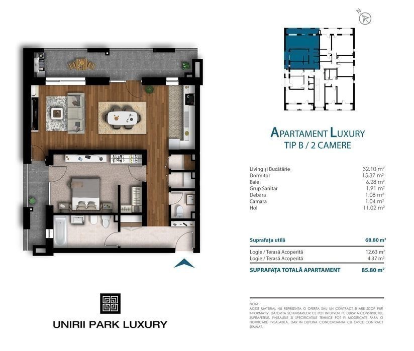 UNIRII PARK LUXURY Mai sunt 2 apartamente disponibile,parter și etaj 2. Apartamente noi, spațioase, în locații excelente Finisaje moderne, ideale pentru locuit sau investiție Acționează acum! Programează o vizionare sau cere detalii: Site Uniriiparkluxury.ro Lista preturi: Apartament tip A 2 camere Suprafața utila 55 mp plus 10.47 mp terasa Compus din: Living+ bucătărie 29.26 mp Dormitor 12.64 mp Hol 5.77 mp Băie 4.53 mp Debara/cămară 2.51 mp Terasa acoperita 10.47 mp Preț finisat la cheie cu tva inclus 117 900 euro Parcări exterioare cu cf 6900 eur tva inclus Boxe depozitare situate la parter. Stadiu predare pentru varianta semifinisat /În acest caz prețul este de 107 900 euro pt apartamente 2 camere parter/pentru cele de pe etaj 2 prețul creste cu 2000 eur/ apartament. Predare la cheie include Tencuit Gletuit Zugrăvit Parchet Gresie Faianță Obiecte sanitare Instalație electrica, inclusiv prize și intrerupatoare Usi interioare Ușa metalica la întrare Video interfon Camere video Centrala Calorifere Terase finisate Spați comune amenajate/finisate/casa scariI/acces Izolație fonica în pardoseala cu polistiren extrudat 3 cm Încălzire în pardoseala la parter Izolație exterioara cu vata minerala 15 cm și decorativa Caparol Geam termopan cu 6 camere cu 3 rânduri de sticlă securizata Balustrade exterioare din sticlă securizata Exteriorul blocului finisat Alte dotări ale condominiu: Spatii verzi/gazon/plante ornamentale Instalație irigație gazon Bazin colectare ape pluviala necesare irigație proprie Loc de joaca pt copii Țarc special amenajat pt câini Rastele pentru biciclete Pista pt biciclete Stație pentru încărcare mașini electrice Platforme pt colectare gunoi selectiv Toate unitățile racordate Trotuare promenada Parcari amenajate Drum acces cu asfalt Ansamblul este compus din 7 blocuri cu regim de înălțime P+2 Lucrările sunt în stadiu avansat/primele 6 blocuri sunt finalizate iar bloc nr 7 (ultimul) predare luna august! Pt alte detalii ne puteți contacta la telefon 07******68 Facebook Unirii Park Residence Web Uniriiparkluxury.ro