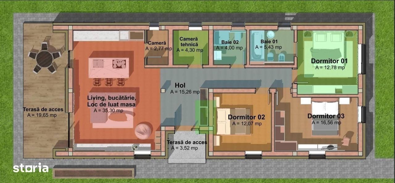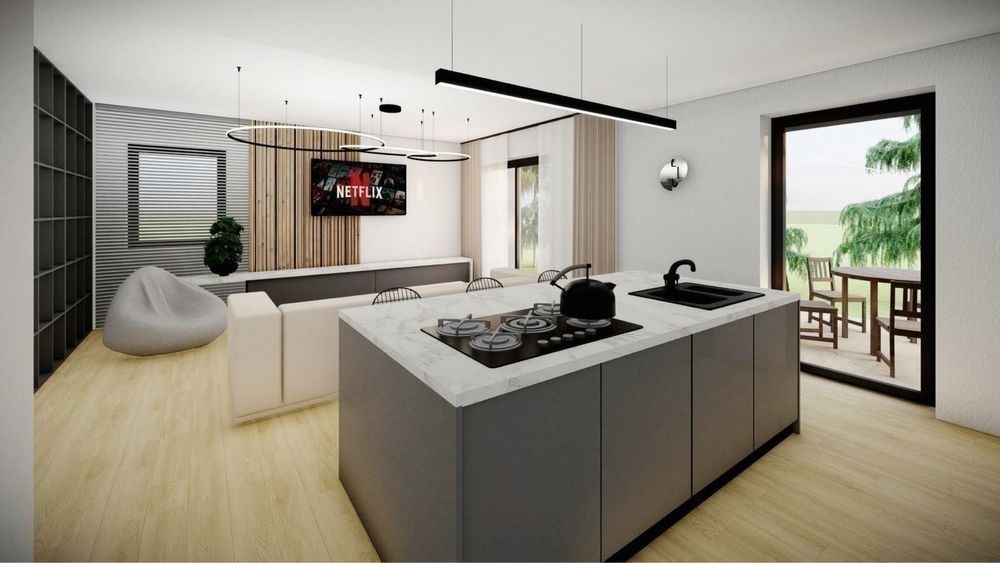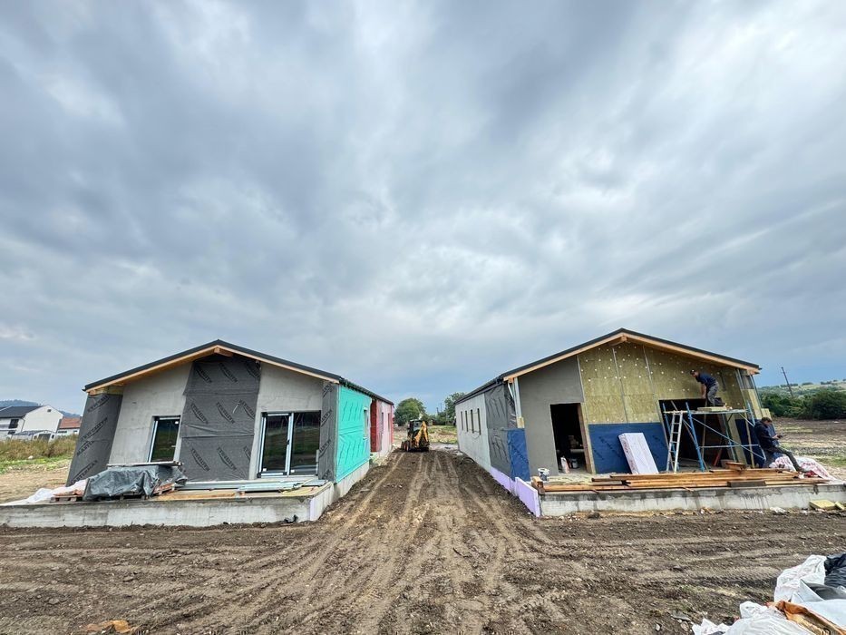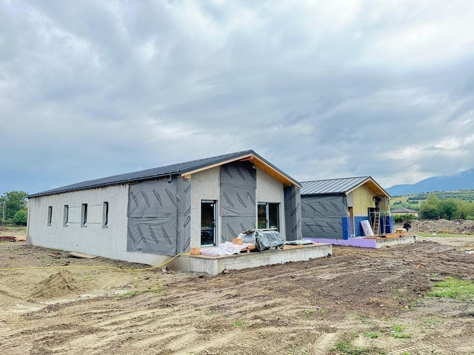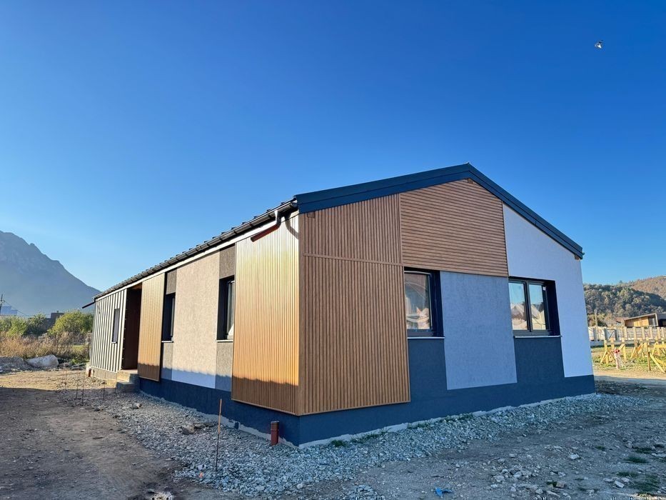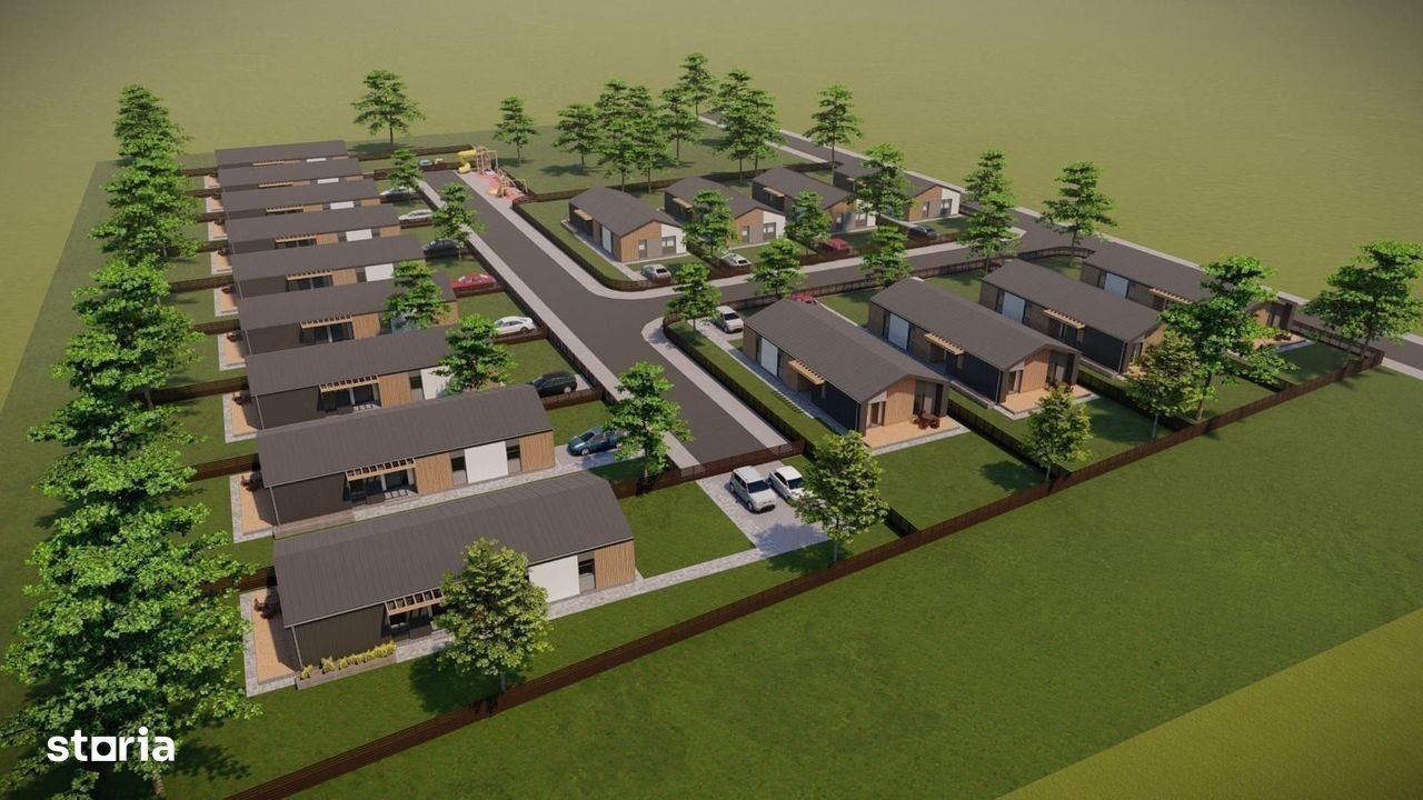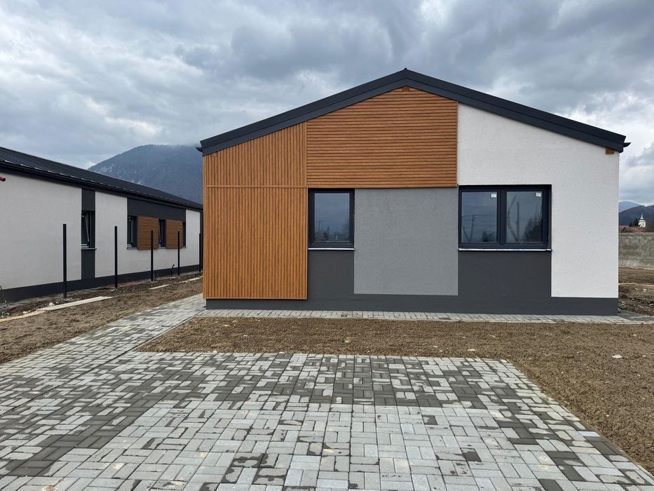 Morani Invest Zărnești - Ansamblu rezidențial de case ( Confort, Rafinament, Eleganță ) cuprinde 17 case individuale, pe un singur nivel, Parter. Complexul se află în Zărnești, Județul Brasov. Detalii : * Suprafața utila : 108,47 mp * Suprafață terasă living : 19,65 mp * Suprafață terasă de acces : 3,52 mp * Suprafața construită : 145,50 mp * Suprafață teren : 500-700 mp * Suprafață teren liber : ********** mp Casele sunt structurate astfel : * Living cu bucatarie open-space, cu acces pe terasă ( posibilitate închidere bucătărie ) * Dormitorul matrimonial cu baie proprie ( cu cadă ) * 2 Dormitoare secundare * Baia secundară ( cu dus ) * Cameră depozitare alimente * Cameră tehnică * Hol acces generos * Terasă exterioară Deține : * 2 Locuri de parcare pavaj + Pavaj alei pietonale + Trotuar de gardă Orientare imobil : sud-est, ceea ce îl face foarte însorit pe toata durata zilei. Proprietatea este nou data in folosință, se vinde NEMOBILATĂ, cu finisajele incluse. Casele se predau finisate la cheie și vin echipate cu : * Uși interioare : nuanța albă * Încălzire in pardoseala * Termostat inteligent în fiecare cameră * Grupurile sanitare complet mobilate și utilate Detalii construcție : * Zidărie din cărămida cu goluri ( 25 cm ) * Termoizolație din vată minerală bazaltică ( 10 cm ) * Tâmplărie geamuri termopan Salamander greenEvolution 76 Anthrazitgrau * Învelitoare din tablă fălțuită, culoare gri antracit * Placare fațadă cu tabla fălțuită culoare gri antracit * Placare fațadă cu Lemn/PVC * Tencuiala decorativa de exterior, culoarea - alb * Tencuiala decorativa de exterior, culoarea - gri * Tencuiala decorativa de exterior, culoarea - gri antracit Utilități : * Gaz * Curent * Apă * Canalizare Facilități complex : * Loc de joacă pentru copii * Magazine * Asfalt * Iluminat stradal * Hidranți Metode de plată : Se accepta orice tip de credit bancar sau plata cash. Va așteptăm la o vizionare pentru o prezentare detaliată! Ne găsiți zilnic la biroul nostru din cadrul complexului - Str Nouă, Zărnești, Brașov. Preț : 163.500 euro ( TVA inclus ) Direct Dezvoltator Comision 0%