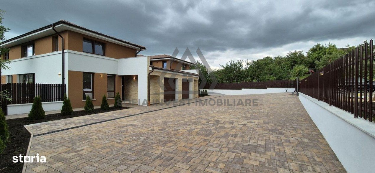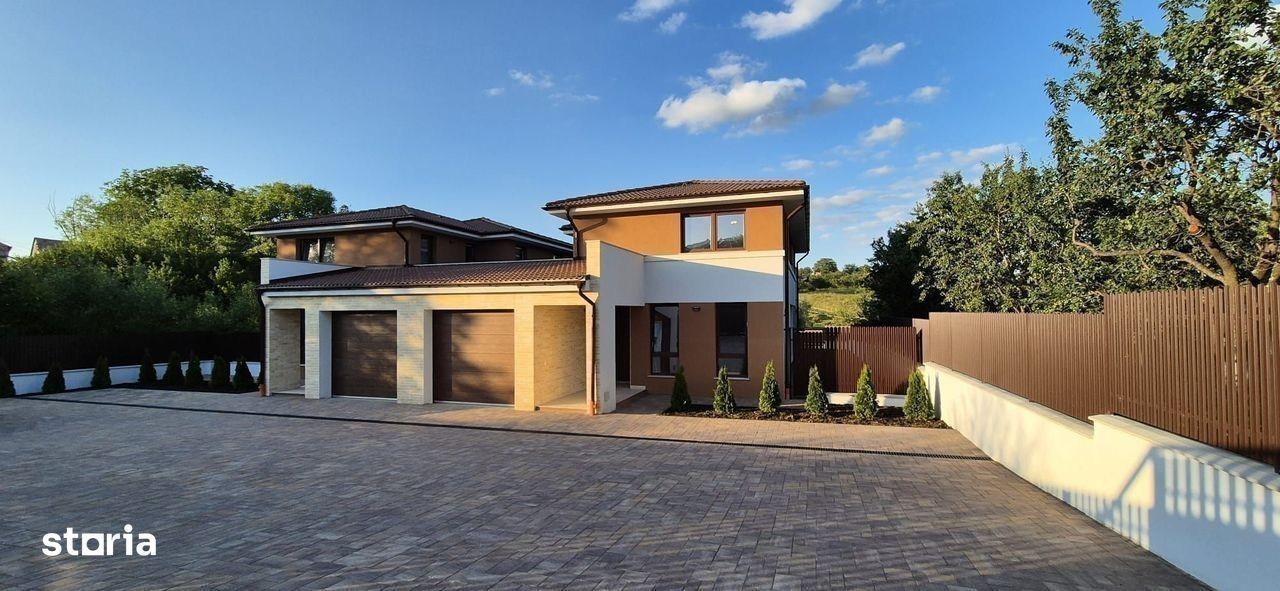 Va propunem spre vanzare doua unitati locative cuplate in loc. Feleacu,jud.Cluj Casele au o suprafata de aprox.219mp/unitate,iar suprafata terenului este de 700mp/unitate si sunt compartimentate dupa cum urmeaza: Zona de parter este alcatuita din living,bucatarie,loc pt servirea mesei,camara,baie,camera tehnica (CT,uscator,msh),acces pe terasa acoperita.Tot la parter dispune de un birou care poate fi folosit ca si camera de oaspeti,de asemenea acces la garaj din zona holului de intrare. La etaj casa dispune de trei dormitoare din care unul matrimonial cu baie proprie si dressing,tot aici mai este o baie comuna,acces la doua terase neacoperite care iti ofera o priveliste deosebita a zonei. Podul casei este utilizabil si este izolat cu spuma poliuretanica pt o eficienta marita. Casa va fi racordata la toate utilitatile,va avea CT proprie pe gaz,incalzire in pardoseala parter/etaj,curtea va fi imprejmuita si finisata,deasemenea fiecare unitate va avea si zona amenajata pt parcare exterioara. Accesul din drumul principal se va face pe o strada privata. PRETUL AFISAT ESTE PT O UNITATE LOCATIVA Se va preda la stadiul de semifinisat Pt mai multe detalii sunati la nr de tel.07******59