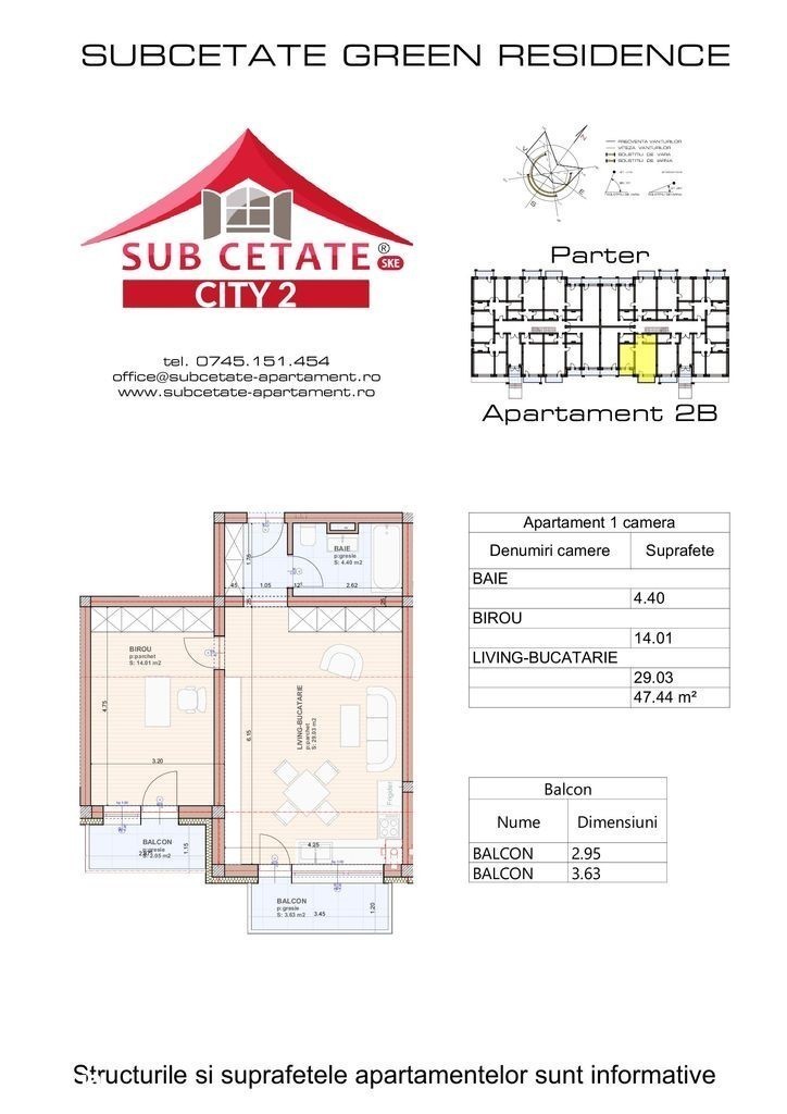 Subcetate Green Residence este localizat in N-E Brasovului, la o distanta de doar 3 km de oras, si este perfect racordat la infrastructura: plecand cu masina din complex in decurs de 1 minut ajungi la centura ocolitoare a Brasovului si intri direct in oras.Urmand in continuare ruta pe Strada 13 Decembrie, in 2 minute ajungi la punctul fierbinte al orasului: Coresi Mall, cel mai mare centru comercial al zona imediat urmatoare, ai la indemana o multitudine de locatii: Patinoarul Olimpic, Paradisul Acvatic, Gara Brasov, Unirea Shopping Center, Bazinul Olimpic. Facilitatile unui oras contemporan si toate cele necesare vietii, iti sunt aproape: spitale si farmacii, biserici, scoli si gradinite, banci, magazine, cafenele sau pizzerii.Asadar cine va alege sa devina proprietar al unui imobil situat in noul cartier SUBCETATE GREEN RESIDENCE va avea la dispozitie toate facilitatile zonei :liniste si totodata departe de galagia urbana specifica si uratoarele facilitati:-contorizare individuala apa,energie electrica si energie termica;-obiecte sanitare baie;-racordare la toate utilitatile;-vopsea lavabila,faianta,gresie si parchet;-centrala proprie pe gaz si calorifere;-interfon,internet si cablu TV;-tamplarie ferestre din PVC cu geam termopan