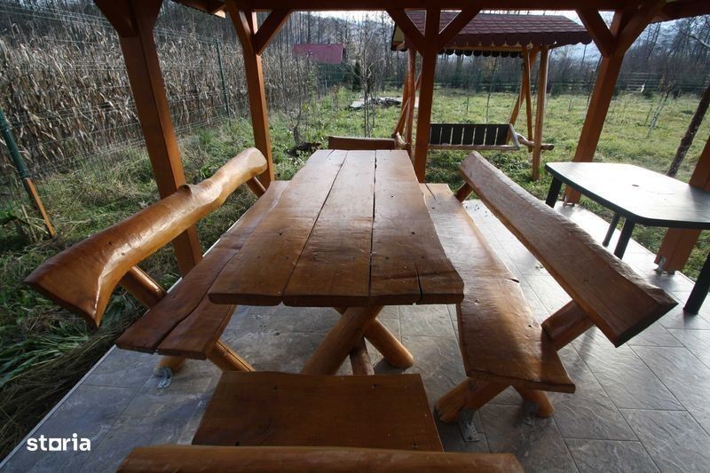 Proprietar vand casa de vacanta in Muntii Poiana Ruscai. Terenul este amplasat la 90 km de centura Timisoarei, cca. 50 minute cu masina. Accesul este foarte bun, asfaltul fiind la doar 250 m de parcela. Terenul este scos din circuitul agricol (procedura ce a durat peste 1 an), este ingradit, avand 3 porti pietonale (fata, lateral si spate - spre parau) + poarta glisanta auto. Locatia este deosebita, fiind inconjurat de padure, in spate se afla parau. Se poate pescui (clean, mreana, pastrav, etc.) adancime: 80-100 cm. Exista 2 autorizatii de construire, cu proiecte aferente (arhitectura, structura, rezistenta, instalatii electrice, termice, sanitare, etc.), studiu geo, etc., dupa cum urmeaza: 1.) Casa parter, caramida, 100 mp utili, 3 dormitoare, living, semineu, 2 bai, terasa acoperita RESPECTV 2.) Casuta de vacanta de lemn (butuc rotund), Parter + Mansarda suprafata (40 mp la sol). La parter: open space: living +chicineta +grup sanitar, la mansarda: 2 dormitoare. la casuta din lemn este realizata fundatia si scurgerile. De asemenea, este finalizat un foisor din lemn, fundatie beton, cca. 40 mp, pavat cu gresie rustica, import Spania, gratar din piatra (compus din 14 corpuri), format din soba (ptr. ceaun,), gratar, deasupra se afla cuptorul, incalzit de la gratar, care este prevazut cu termperatura, import Anglia, chiuveta lavoar, loc de depozitat lemne, sub gratar, balansoar din lemn de cires. Pe teren am ingradit, de asemenea o suprafata de cca. 70-80 mp, in care am facut o mica gradina (ceapa verde, rosii, castraveti, etc.). Terenul are o suprafata de 3000 mp. Casele nu sunt construite, doar la cea de lemn este finalizata fundatia + scurgerile. Pretul este 94.500 euro - negociabil Cerem si oferim seriozitate