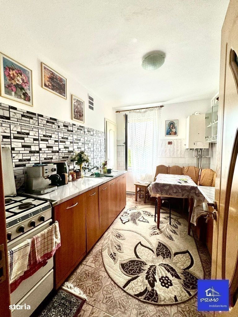 Primo Imobiliare Mures va ofera spre vanzare in exclusivitate un apartament cu 3 camere, suprafata de 70 mp aflat in cartierul Unirii, pe strada Gheorghe Pop de Basesti la etajul 4, mobilat si utilat. Apartamentul se afla la etajul 4/4 al unui bloc izolat termic si are o pozitionare estica ceea ce ii ofera multa luminozitate pe tot parcursul zilei.