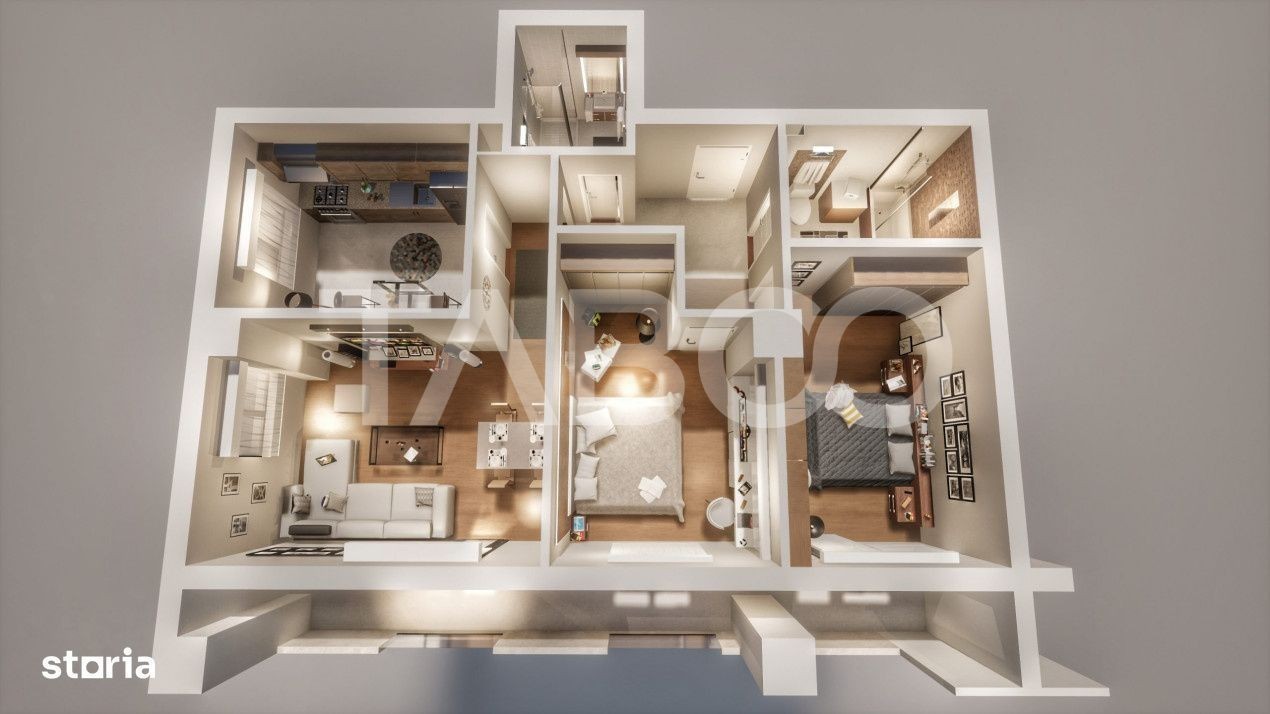 Comisionul dumneavoastra este 0 la acest apartament luminos si spatios de vanzare in Sibiu, cu 3 camere situat in zona Calea Surii Mici, amplasat la etaj intermediar 1 intr-un imobil cu 6 etaje, cu suprafata construita de 98 mp si suprafata utila 70 mp. Apartamentul este compartimentat decomandat si este compus din: 2 dormitoare incapatoare, 1 living cu bucatarie open space, 2 bai spatioase si un cu suprafata de 14 mp ce ofera o priveliste deosebita. Cladirea in care se afla amplasat acest apartament este de tip bloc, in anul cu structuri solide de rezistenta pe cadre, cu stalpi si grinzi din beton armat. Peretii exteriori si cei interiori au fost realizati cu zidarie din caramida Porotherm Wienerberger cu grosimea de 30 cm la exterior si intre apartamente iar zidurile de compartimentare cu caramida de 25 si 12 cm. Aceasta dispune de un grad inalt de eficienta energetica si este izolata termic cu polistiren de 10 cm cu densitatea EPS 80. Tamplaria exterioara instalata la locuinte are profil PVC de la Salamander, cu 5 camere si 3 foi de sticla, glafuri de aluminiu exterior si pvc interior. Balcoanele sunt cu tencuiala decorativa, inchise in caramida si sticla securizata, placate cu gresie. Casa scarii dispune de acces securizat, scarile placate cu gresie, plafoniere LED cu senzori de miscare si zugraveli in lavabila alba. Apartamentul se vinde la stadiul de "alb" si beneficiaza de: - un loc de parcare suprateran inclus in pret; - Usa metalica antiefractie de acces; - PVC Salamander cu geam termopan Low-E cu 3 foi de sticla si 5 camere - Glafuri interior-exterior - Centrala proprie in condensatie + senzor de gaz - Incalzire in pardosea cu distribuitor - Pereti tencuiti, gletuiti si zugraviti cu lavabila alba in 2 straturi - Sapa autonivelanta - Instalatii electrice trase pe pozitie cu tablou general si sigurante pentru consumatorii de putere - Instalatii pentru TV si internet trase pe pozitie - Interfon - Racorduri apa-canal in bai si bucatarie - Racord gaz metan in bucatarie Spatiile comune se predau finisate la cheie: - Usa din PVC la intrarea in bloc cu sistem de blocare electromagnetic - Interfon cu cartela - Casa scarilor placata cu gresie - Balustrada din inox - Zugraveli cu lavabila alba si plafoniere cu senzori de miscare - Lifturi pentru fiecare scara in parte - Alei si trotuare pavate - Spatii verzi amenajate - Iluminat stradal - Strazi interioare amenajate. Pret: 133.570€ Sună-ne acum și află detalii despre această proprietate de vanzare din Sibiu, dar și despre alte proprietăți potrivite pentru tine.