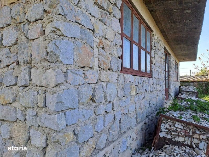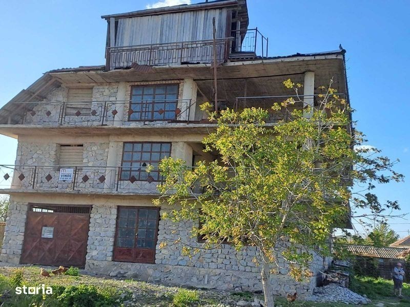 Casa in Delta Dunarii construita din piatra Impartita in 12 camere, 2 terase, 3 bai, garaj, camara. Beci + parter + etaj + mansarda,amprenta la sol 14m/14 m, 500 mp locuibili. Se afla pe un teren de 1350 mp. Situata in loc Mahmudia,str. Unirii Nr.7, jud. Tulcea. Pretabila pensiune. Casa este la rosu.Casa este la exterior construita din piatra, zidurile interioare sunt din beton cu grosimea de 40 cm. Utilitati la poarta, electricitate, apa, canal. Pretul este de 120 000 euro negociabil