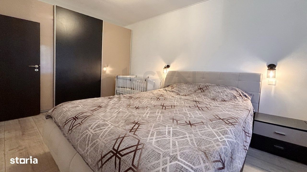 Ati accesat un imobil situat in cartierul Tractorul. LOCALIZARE: Apartamentul propus este pozitionat intr-un complex rezidential nou, in imediata apropiere a Coresi Shopping Resort. COMPARTIMENTARE: Proprietatea este dispusa pe 2 camere, structura decomandata, cu urmatoarea compartimentare: - holul de acces; - dormitorul, care are o suprafata generoasa; - living-ul, acesta beneficiind de spatii vitrate mari si de usa de acces; - bucataria, care este inchisa, mobilata si utilata cu plita, cuptor, hota, frigider, etc.; - baia, aceasta fiind dotata cu aerisire naturala si cabina de dus; DOTARI: - usa metalica; - centrala termica; - tamplarie PVC, cu geam termopan; - loc de parcare; - 2 cai de acces. Tranzactionarea proprietatii se va face semi-mobilata. Aceasta proprietate poate fi folosita atat ca locuinta, cat si ca spatiu de birouri. IMPREJURIMI: Apartamentul este situat intr-o zona de blocuri, accesul auto, pana la zona de centru a orasului, facandu-se in cca. 7 minute. Se accepta achizitionarea prin accesarea unui credit bancar