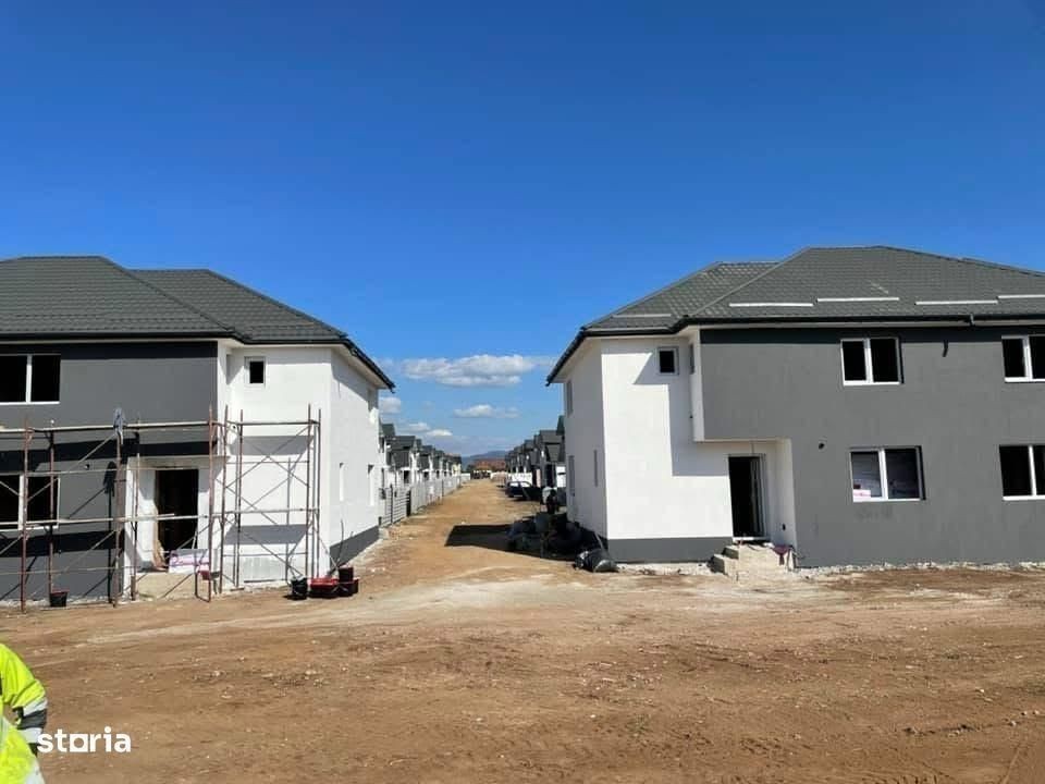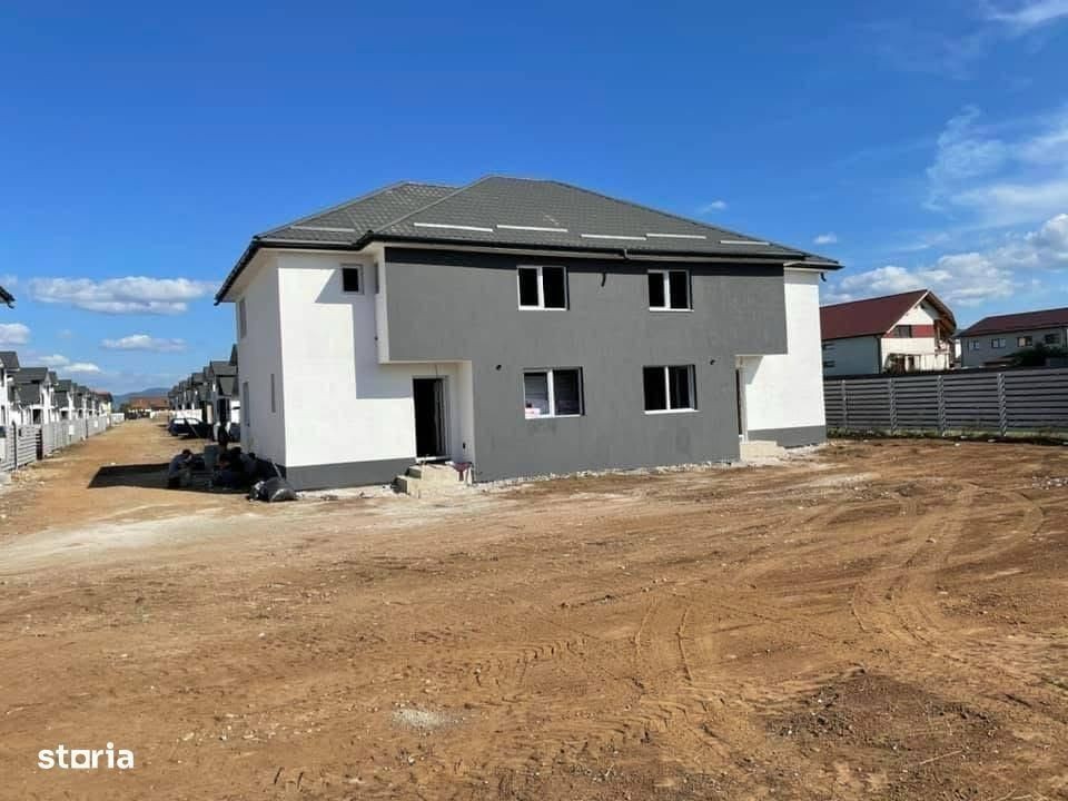 Casa tip Duplex la 5 km de Brasov, cartier Izvor avand 4 camere, 2 dormitoare la etaj,un grup sanitar,2 dormitoare+ pod de 40 mp in care se mai poate amenaja un spatiu de locuit sau spatiu de depozitare.Acoperisul este din tigla metalica cu izolatie din spuma poliuretanica de tip celula inchisa,placa de 20 cm grosime+izolatie intre etaje.Toata casa este din caramida cu fundatie la 1,10 metri adancime,gard din beton cu fundatie,.Pentru mai multe detaliip;uteti accesa si link-ul video: varianta de casa tip duplex cu teren/curte proprie suprafata 500 mp-pretul se majoreaza la 140000 euro +TVA.PEntru cele cu teren 250 mp-pretul este de 125000 euro+TVA.Structura,amenajarile interioare sunt identice,diferenta o constituie dimensiunea terenului pe care sunt construite.