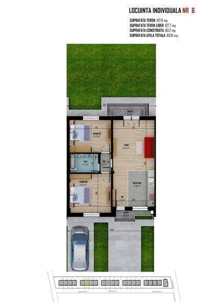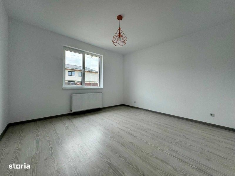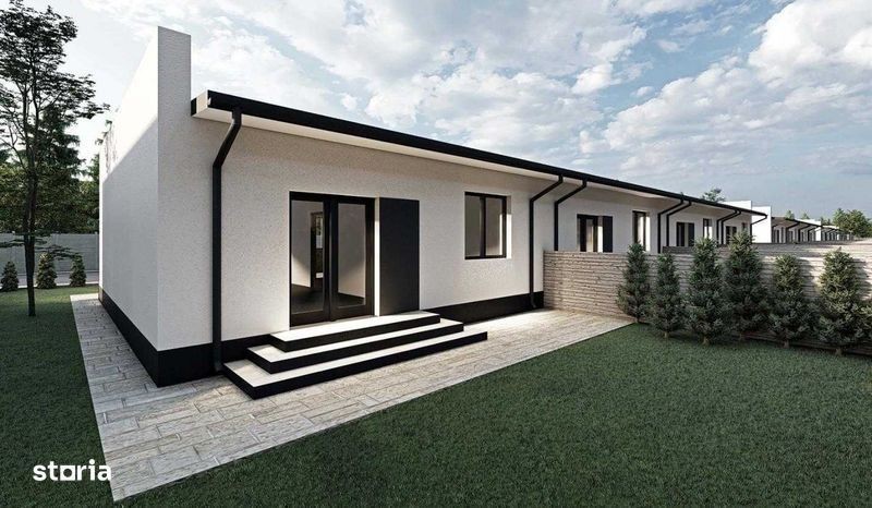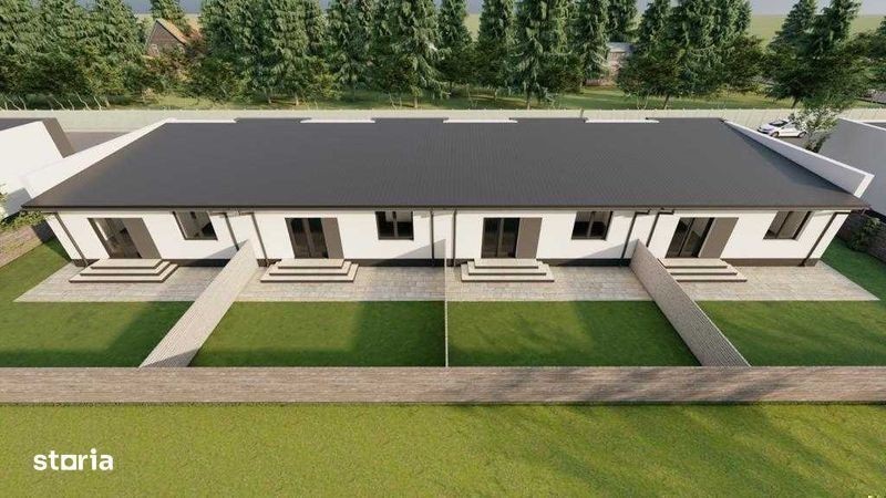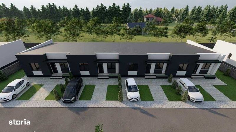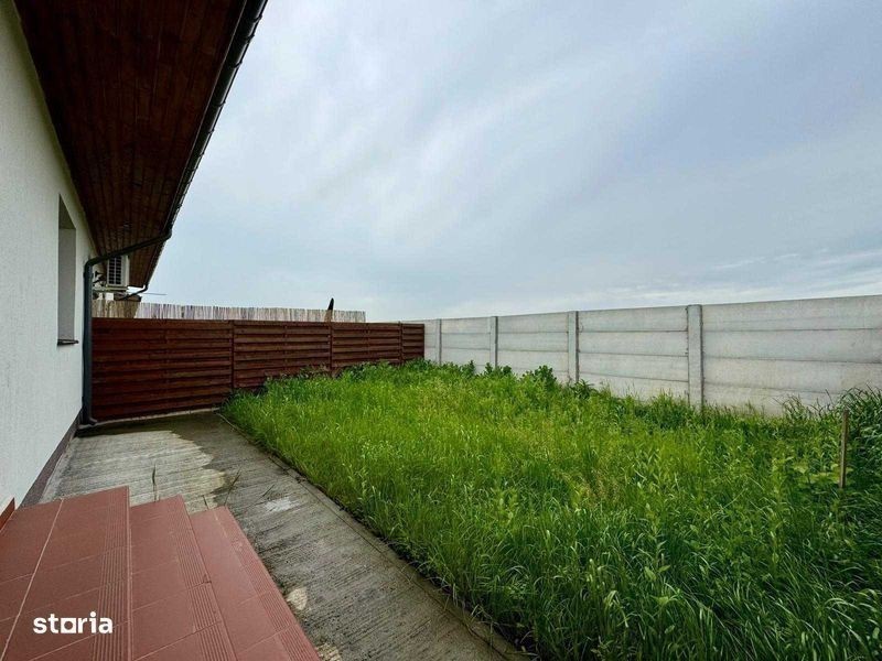 Casa cu 3 camere in Gardena Residence,Magurele. Casa este racordata la toate utilitatile: apa, canalizare, gaz, curent electric. 2 locuri de parcare amenajate in fata casei. Suprafata contruita este de 80,20 mp si este compus din: living 24.20 mp, bucatarie 7.80 mp, baie 4.70 mp, hol 2.00 mp, hol 1.80 mp, dormitor 14.70 mp, dormitor 12.20 mp. Peretii interiori de compartimentare din caramida cu goluri verticale avand o grosime de 11 cm, pe care se aplica tencuiala mecanizata pe baza de ciment, glet si vopsitorie lavabila de interior in nuanta de alb; • Podina din lemn, sarpanta de lemn, invelitoare din tigla metalica si sistem pluvial. Finisaje interioare: • La pereti - tencuieli pe baza de ciment, glet grosier si finisaj, vopsitorii lavabile (nuanta alb); • Tavanele realizate din gips carton, pe structura metalica, cu vopsitorie lavabila. Instalatii electrice, sanitare si termice: • trasee electrice curenti tari si curenti slabi, aparataj • trasee radiatoare, distribuitoare, radiatoare, centrala termica proprie in condensatie • trasee instalatii sanitare, obiecte snaitare. Amenajari exterioare: • Trotuarul perimetral si locurile de parcare este executata din beton periat, imprejmuirea este realizata cu gard din lemn/ beton.