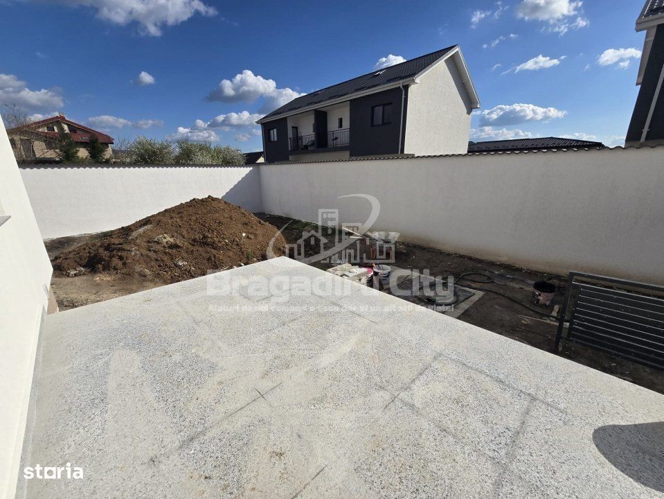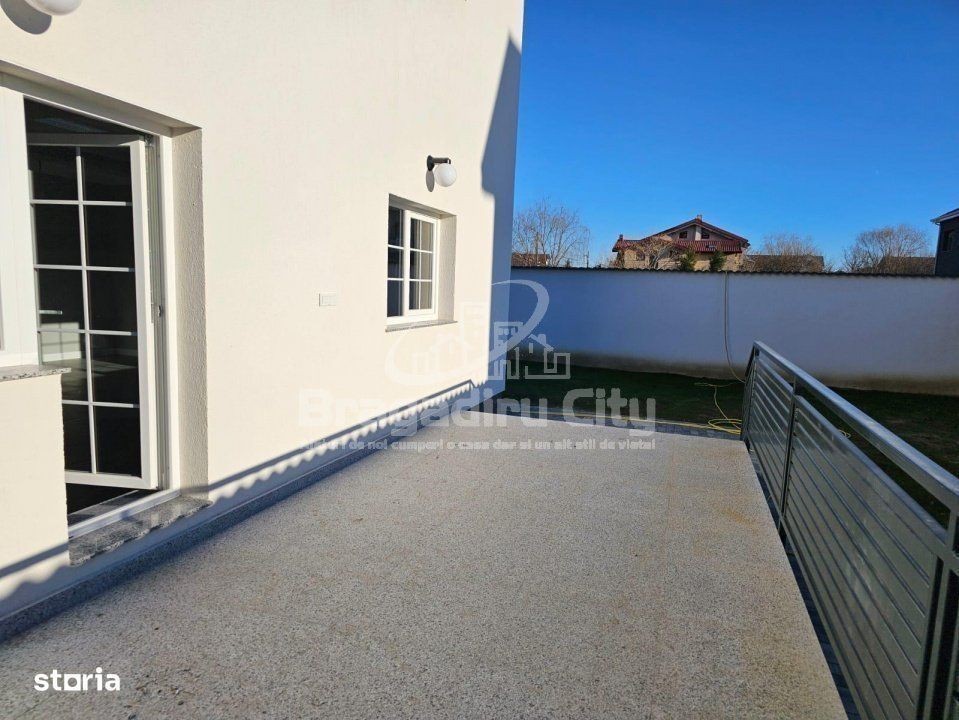 Vila P+1 construita cu responsabilitate si bun gust, situata in Bragadiru. Aceasta este compusa din 4 camere si este impartita astfel incat sa aveti un confort cat mai ridicat. Casa dispune la parter de un living generos cu bucatarie open space, dar care se poate inchide, amble ecu iesire pe terasa, dormitor si o baie. La etaj avem 2 dormitoare mari, o baie si un spatiu de depoziatare. La interior sunt folosite gresie si parchet de buna calitate, iar scara de acces catre etaj este placata cu piatra naturala (granit). La exterior, terasa si aleile sunt amenajate cu pavele si granit Vilele este racordat la toate utilitatile (retea de apa, canalizare, gaz si curent electric). Toate vilele au certificat energetic clasa A. Proprietatea se vinde la cheie, exact ca in poze.