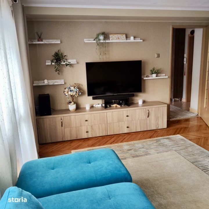 Apartamentul cu 2 camere, baie, bucatarie, balcon inchis. Bonus inca un balcon cu acces de pe casa scarii. Renovat modern, se vinde mobilat partial. Dotari CT, AC, mobilier MDF, electrocasnice. Suprafata 56 mp plus 10mp balcoane, plus boxa subsol 15mp. Aranjat frumos, lux. Zona linistita si prietenoasa. Parcare rezervata inclusa in fata blocului. Detin garaj care se poate vinde la cerere pret 7000 Eu.
