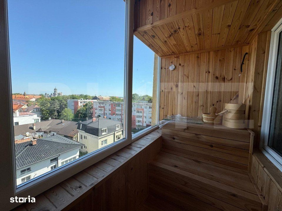 Blitz va propune spre vanzare acest apartament tip penthouse, o adevărată bijuterie imobiliară, situat la etajul 5. Cu o suprafață utilă de 177 de metri pătrați, această proprietate redefinește conceptul de lux și confort. Cu trei dormitoare spațioase, fiecare amenajat cu atenție la detalii, veți găsi tot spațiul de care aveți nevoie pentru odihnă și relaxare. Livingul impresionant, elegant și luminos, oferă un mediu perfect pentru a vă bucura de momentele alături de familie și prieteni. Bucătăria ultramodernă este echipată cu cele mai recente electrocasnice, oferindu-vă posibilitatea de a găti în stil gourmet. Debaraua vă asigură că totul este ordonat și bine organizat. In interiorul apartamentului regasim si 1 dressing. Cu toate acestea, adevărata perlă a acestui apartament este sauna, pozitionarea ei te face sa te bucuri de toata privelistea ponoramica a orasului! Acest apartament tip penthouse oferă o experiență unică de locuit și reprezintă o oportunitate rară pe piața imobiliară. Nu ezitați să ne contactați pentru a programa o vizionare și a vă convinge de toate beneficiile acestei proprietăți extraordinare.