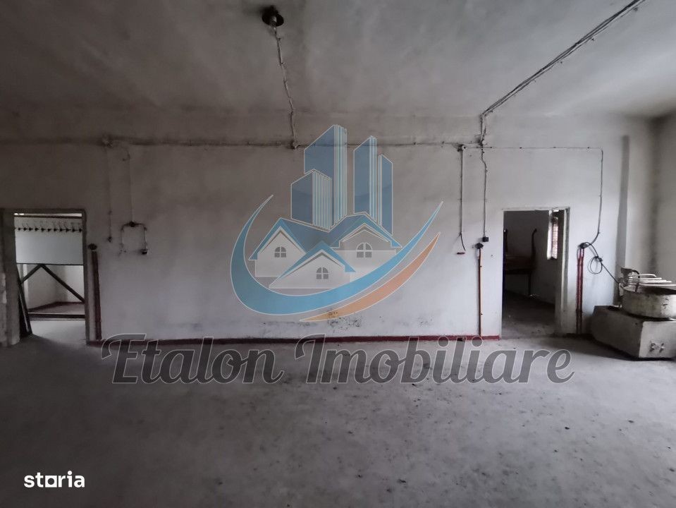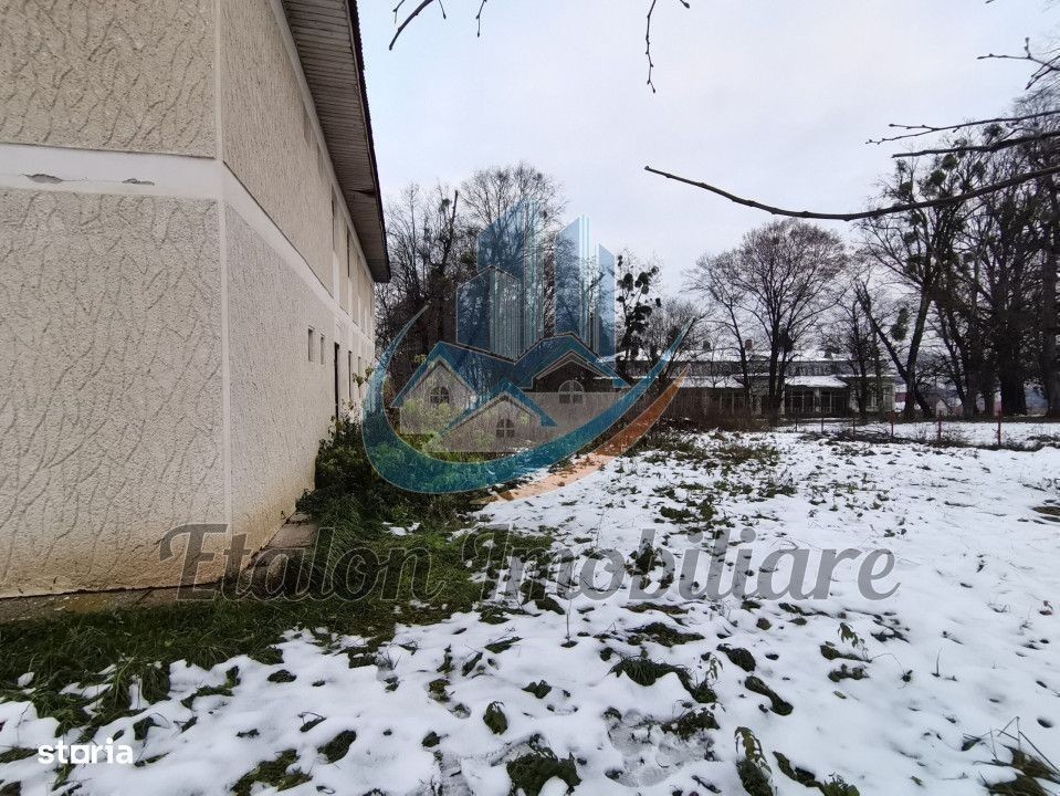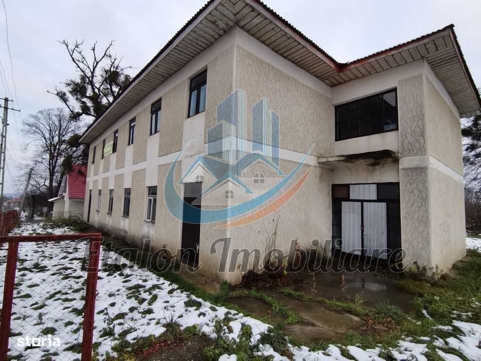 Imobilul P+1 are suprafata de 400 m utili, parter 200, etajul 200 iar podul este potrivit pentru depozitat lucruri. Cladirea este finalizata in anul 1987, a functionat o perioada ca brutarie ea putand fi transformata in camin de batrani, gradinita, casa sau sediu de birouri! Are 1 baie in toata cladirea, la parter sunt baia si 4 camere spatioase acolo unde au fost si cuptoarele de paine, cladirea este destul de bine intretinuta si uscata! La etaj sunt 11 camere dintre care jumatate au sobe de teracota, dimensiunea aproximativa a camerelor este de 5x4 si 6x4. Cladirea este situata la strada avand accesul usor de folosit din asfalt, terenul are o suprafata de 1345 metri, este teren drept. Utilitati: apa DA, gaz NU, electric DA. Deschiderea la strada a terenului este de 42 m iar latimea este de 32 m.