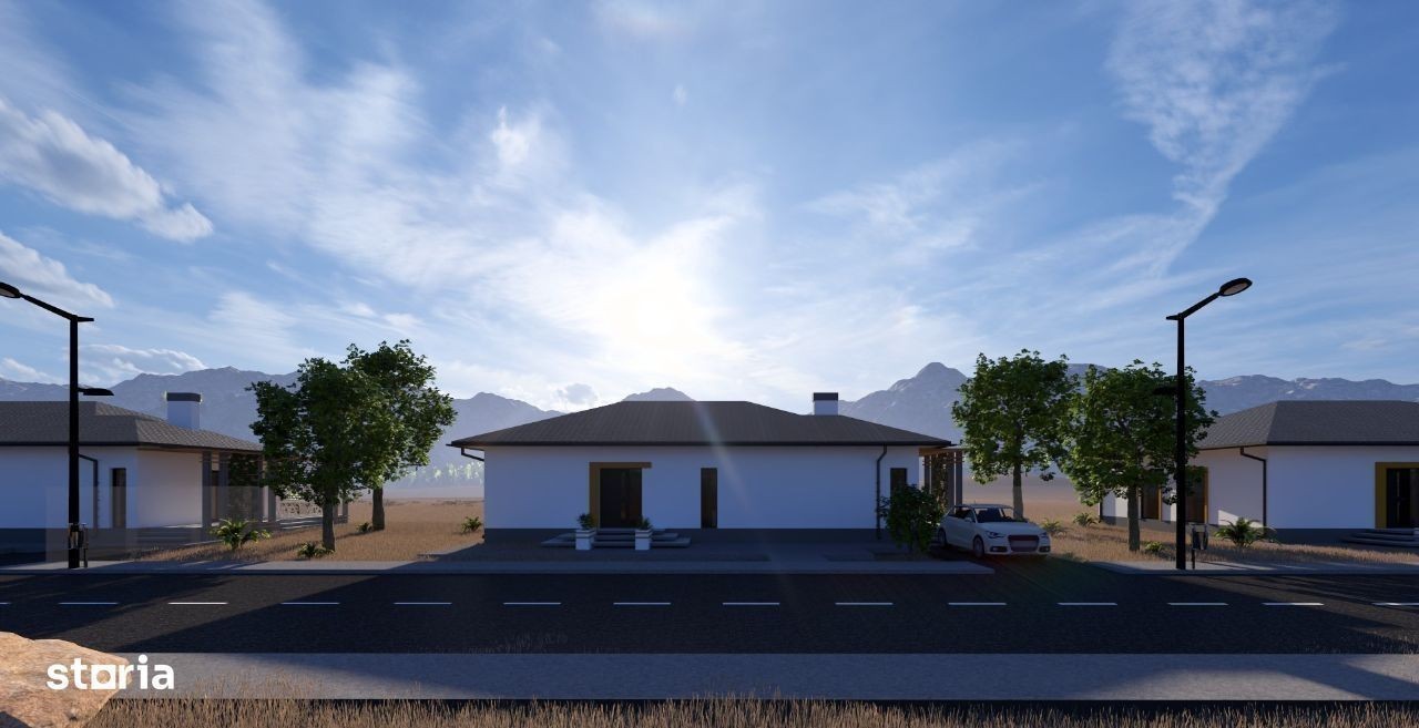 Senzi Imobiliare vă prezintă un proiect nou de 6 case în Stupini, cu finalizare estimată pentru august 2025. Fiecare locuință este construită cu atenție deosebită la toate etapele, garantată de vasta experiență a dezvoltatorilor. Casele sunt pe parter și oferă o compartimentare modernă și practică: Living open-space cu acces direct pe terasa de 20,12 mp Două dormitoare confortabile Birou ideal pentru activități profesionale sau studiu Două băi Spațiu suplimentar de depozitare în pod Pereții interiori sunt din cărămidă, oferind un plus de izolare termică, iar amplasarea într-o zonă liniștită și foarte căutată din Stupini, un cartier rezidențial al Brașovului, asigură un stil de viață confortabil. Aceasta este o oportunitate excelentă pentru cei care își doresc un cămin modern, într-o locație liniștită, la doar câțiva pași de facilitățile orașului.