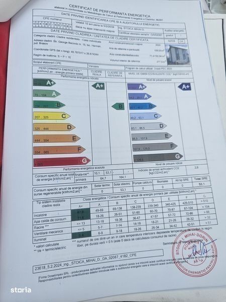 Strada George Bacovia nr 15. Intrare de pe aleea 14 (langa biserica) Suprafata teren: 1300mp Suprafata utila casa: 155 mp Casa smart, are aplicatie de control total pe telefon. Etaj: 3 dormitoare, baie dressing Parter: living open space cu bucatarie, baie, garaj Beci 12mp Izolatie: Casa pe structura de lemn tratat, 15cm vata bazaltica interior, 20 cm vata bazaltica exterior. In placa din pardoseala sa introdus 20cm de polistiren, si peste placa inca 10 cm. Total 30cm Etansitate folie isover Termopane tripan Barrier 100, grosime 5.2cm cu termomodule. Termice: Termosemineu 16kw Boiler electric cu 2 spirale 200L Centrala electrica 12 kw Electrice: 48 panouri fotovoltaice (total 18kw putere) 48 celule Liithium (total 48kw) 3 invertoare x 5.5kw (total 16.5kw) Casa complect independenta, singura factura este cea la digi. Nu este racordata la nici o utilitate! Put forat a3a panza freatica (50m) Fosa septica tricamerala de 5000L cu certificat. Piscina 10m x 5m x 1.4m incalzita. (In luna iunie apa are 30 - 32 grade) Certificat energetic A+ (47kw /an / mp) se incadreaza la case pasive.