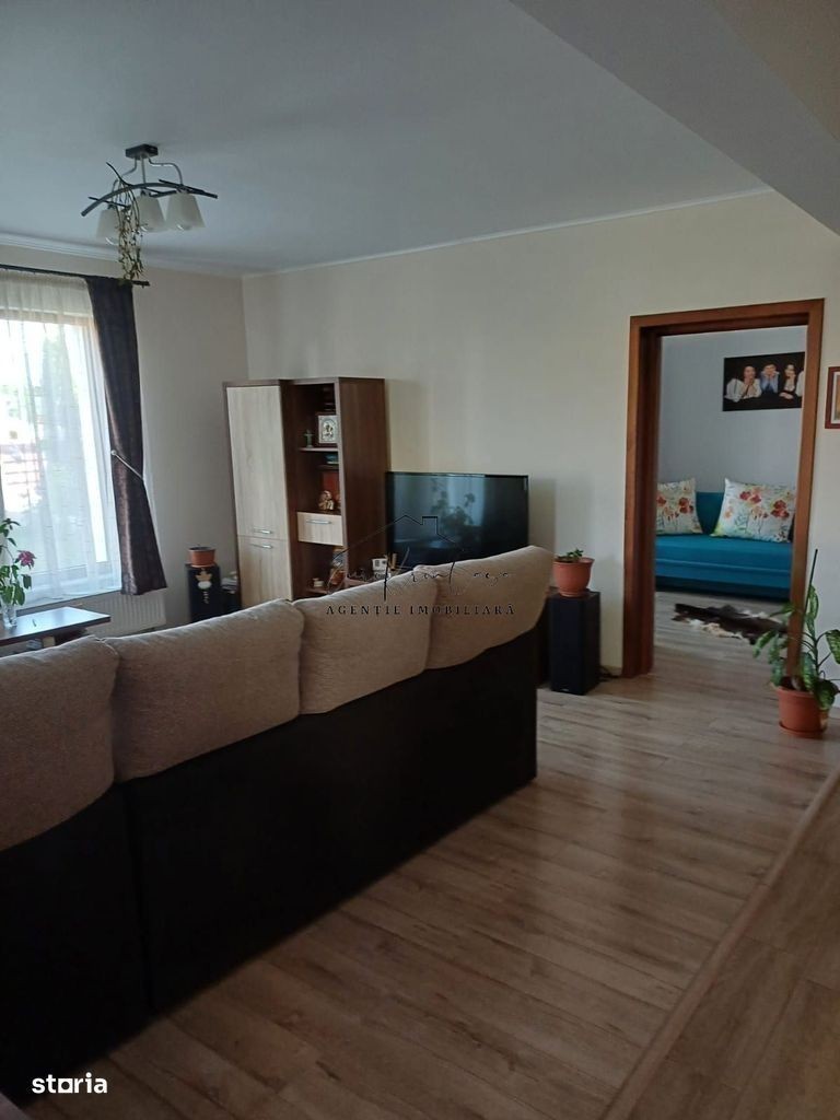 Va propunem la vânzare o casă duplex spatioasa situata in Sanpetru, la aproximativ 2km de Brasov Construită în 2017 este structurata dupa cum urmeaza P+E Suprafața utila totala de 145mp, Parter: living, bucatarie, hol, casa scarii, baie cu cabina de dus, dormitor, terasa amenajata, camera tehnica, beci sub terasa. Etaj I: hol, 3 dormitoare, o baie Casa este complet mobilata si utilata si se vinde ca atare Casa este racordata la energie electrica, gaz, centrala cu peleti, centrala cu gaz, incalzirea cu calorifere, fosa septica. put, apa si canal de la retea, panouri solare, senzor de fum, alarama cu senzor de miscare, aspersoare pentru gazon Terenul are o suprafață totala de 374 mp. Pentru mai multe detalii si vizionare va rugam sa ne contactati!