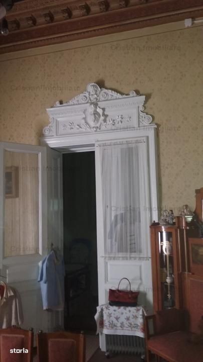 Casa Boiereasca,zona Ultracentrala * Constructie din caramida, acoperita cu tabla * Suprafata teren 538mp * Suprafata construita 248mp * Deschidere 28 m * Regim inaltime: D +P +Pod mansardabil * Compartimentata astfel: Demisol 4 camere si hol, la parter 4 camere, hol, baie, bucatarie, vestibul * Sursa de incalzire sobe teracota pe gaz * Tamplarie interioara si exterioara din lemn masiv * Beneficiaza de toate utilitatile * Toate actele la zi