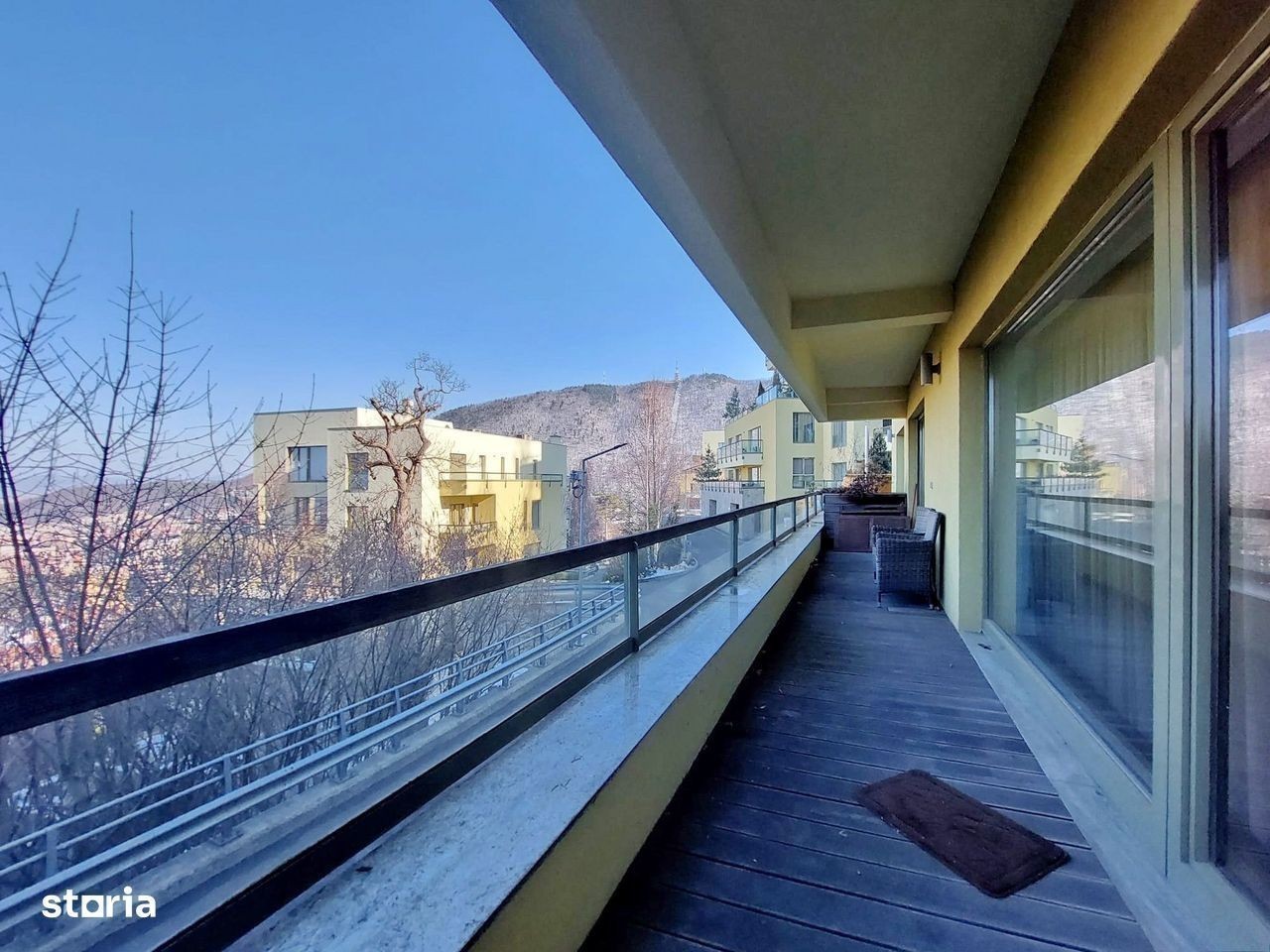 Proprietatea propusa spre achizitionare se afla pe Drumul Poienii, in complexul exclusivist Bellevue Residence. Apartamentul este compus din living, bucatarie, hol, dormitor cu dressing si baie proprie, baie pentru oaspeti si o terasa cu priveliste directa catre Multele Tampa si oras. Dispune de structura decomandata, cu compartimentare practica, suprafete vitrate ample si finisaje premium. Locuinta se tranzactioneaza cu mobilierul si aparatura electrocasnica din prezentare. In pretul afișat sunt incluse un loc de parcare subteran si o boxă.