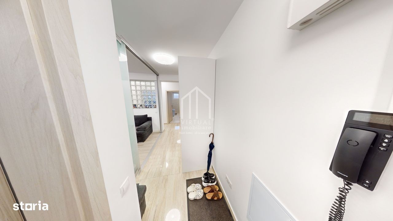 Apartament de vanzare 3 camere, mobilat si utilat, videointerfon Zona: Cartier Kogalniceanu Avantaje: - etaj 1 -mobilat, utilat - loc de parcare -finisaje de calitate -aer conditionat -bucatarie inchisa -balcon inchis cu sticla -cartier exclusivist Compartimentare: -hol - bucatarie -living - baie - 2 dormitoare -balcon cu acces din bucatarie si living Mod de plata: Se poate cumpara cu orice varianta de plata atat surse proprii cat si credit bancar. Mod de predare: Apartamentul de vanzare in Sibiu se preda mobilat si utilat.