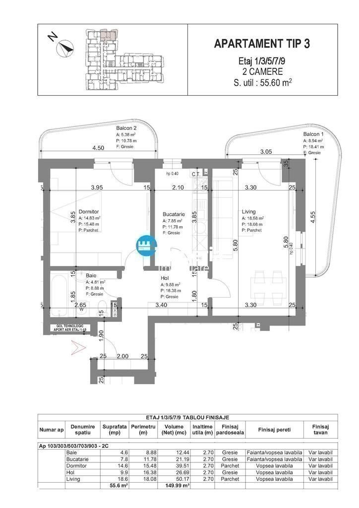 BLU. By HIMSON Start vanzari, preturi promotionale! BLU este un nou ansamblu rezidential unic, conceput de echipa HIMSON, modern si minimalist cu dotari si finisaje de exceptie, pentru ca tu sa te bucuri de un confort absolut. Apartamentele noi din cadrul anamblului BLU sunt inteligent proiectate, creând suprafete ideale pentru toate activitatile familiei tale Blocul va fi amplasat în Municipiul Iasi, zona Galata, pe un teren în suprafata totala de 3.370 m.p. Apartament cu 3 camere, model openspace,doua bai si dressing, confort 1 sporit, situat in cartierul Galata, intr-un imobil aflat in constructie, disponibil la etajul 3 din 10, cu o suprafata totala de 87.86 mp din care 82.50 mp utili si balcon 5.36 mp, situat la etaj intermediar in bloc nou cu termen de predare in 2026. Dotari si facilitati Locatarii Complexului Rezidential BLU by Himson® vor beneficia de - centrala termica individuala în condensatie - termostat cu wifi - aer conditionat inclus - iala smart cu amprenta si diferite modalitati de deschidere - senzori smart - usi din lemn plin vopsite - bai placate cu marmura, mobilate si utilate - gresie si faianta import - parchet 10 mm - tâmplarie exterioara profil PVC-clasa energetica A, 7 camere, sticla tripan - contoare individuale de gaz, energie electrica si apometre - lifturi Schindler - supraveghere video 24 7 si videointerfon în interiorul apartamentului - parcare subterana (pe 2 etaje) si supraterana, ventilata si dotata cu sprinklere,precum si cu sistem de control acces - statii de încarcare a autoturismelor electrice - parcare pentru biciclete - loc de joaca - spatii comerciale la parter Pret apartament fara TVA calculat pentru plata integrala la antecontract = 149056 euro (se adauga TVA ) Apartamentul se vinde impreuna cu un loc de parcare subteran,parcare dubla de tip parklift cu pretul de 18.000 euro TVA inclus Pentru mai multe detalii si informatii,il puteti contacta pe agentul nostru Andrei Radulescu, la numarul de telefon