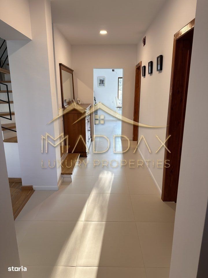 Avem placerea de a va propune spre vanzare o superba vila individuala, 4 camere,P+1+ Pod cu o personalitate aparte, situata in zona Otopeni. La etaj se află două dormitoare, fiecare având o suprafață de 20 m², două balcoane de câte 5 m² fiecare, un hol de 4 m² și o baie de 6 m². La parter sunt amplasate: • un living spațios de 27 m² cu ieșire în grădină printr-o terasă din lemn de 30 m², • un dormitor de 17 m², • un hol de 10 m², • o baie de 6 m², • un garaj de 30 m² pentru două mașini, echipat cu stație pentru încărcare auto electrică și acces direct în casă printr-un dressing de 10 m², • o bucătărie de 20 m², complet mobilată și utilată, separată de living. Casa a fost renovată complet în decembrie 2023, cu materiale de calitate: gresie marca Kerama Marazzi achiziționată de la Delta Studio, corpuri sanitare IKEA. În restul casei, este montat parchet natural din stejar, cu o grosime de 2,5 cm. Toate ferestrele sunt prevăzute cu rulouri electrice acționate prin telecomandă. Exteriorul casei beneficiază de o fațadă ventilată marca Royal Siding, cu garanție de 30 de ani. Deasupra garajului se află un pod de 40 m², destinat depozitării. Casa este racordată la toate utilitățile: curent, gaz, apă (atât din rețea, cât și din puț pentru udarea grădinii) și canalizare. Are uși din lemn masiv și se vinde parțial mobilată: un dormitor, ambele băi, bucătăria, dressingul și livingul sunt complet mobilate. Pentru încălzire și climatizare, este dotată cu o centrală termică nouă marca Buderus de 30 KW, pe gaz, și un sistem complet de climatizare multisplit marca Daikin. Terenul are o suprafață totală de 480 m², din care 90 m² reprezintă servitutea din fața casei, iar 250 m² sunt teren liber. În curte sunt plantați pomi maturi: platani, mesteceni, tei, stejari și ulmi. Grădina este amenajată cu gazon, irigat automat printr-o instalație profesională, și include un grătar și alte facilități pentru relaxare. Pentru mai multe detalii, cat si programarea unei vizionari, va stam la dispozitie.