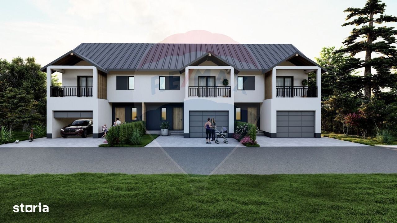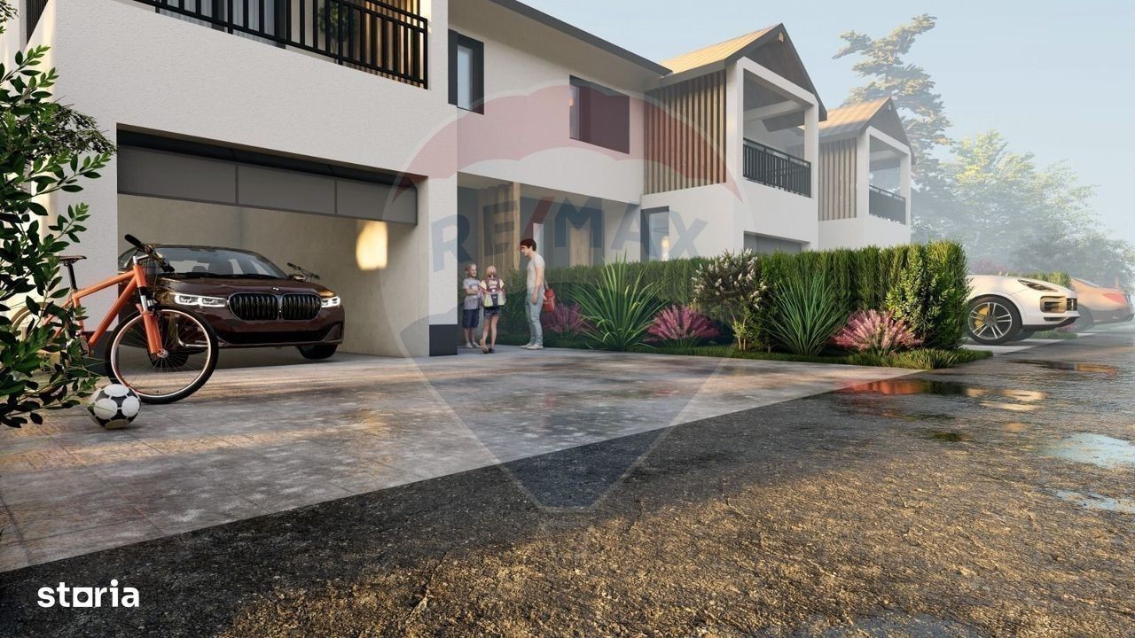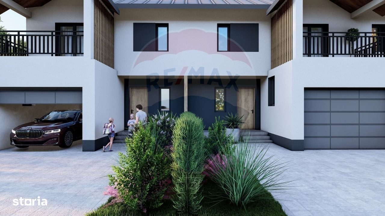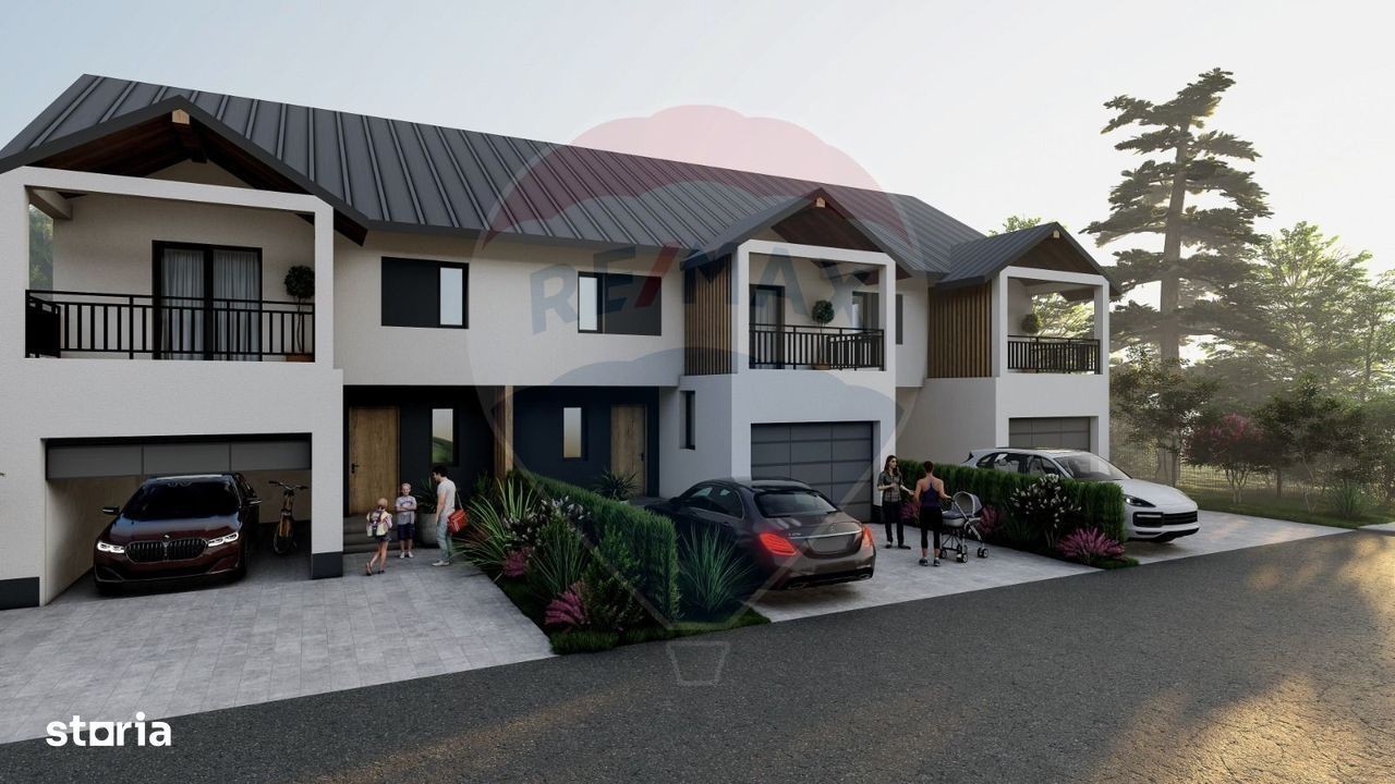 Corpul B Teren: 204 mp Suprafață utilă: 145,12 mp Parterul include: Acces cu gresie antiderapantă Hol + scară finisate cu gresie, pentru acces facil între etaje Grup sanitar cu gresie, asigurând confortul zilnic Debara finisată cu gresie - spațiu ideal pentru depozitare Living + bucătărie open space, ce oferă un ambient luminos și primitor Garaj cu acces direct, finisat cu gresie antiderapantă pentru siguranță Etajul include: Hol finisat cu gresie Două băi finisate cu gresie 3 dormitoare spațioase Terasa acoperită, perfectă pentru relaxare Aceste locuințe sunt ideale pentru cei care își doresc o combinație de modernitate și intimitate, într-un cadru rezidențial bine gândit. Poziționarea strategică a ansamblului în Brașov oferă acces rapid la principalele rute de transport naționale și europene, fiind ideală atât pentru familii, cât și pentru cei care apreciază un stil de viață urban și conectat.