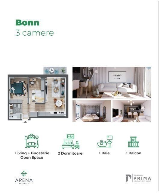 Prestige Imobiliare vă propune spre vânzare, cu 0% comision de la cumpărător: Apartament cu 3 camere de tip Paris - Prima Arena Residence Caracteristici Generale: • Locație: str. Octavian Goga nr. 8A • Clădire: P+8 • Încălzire: de la rețeaua de termoficare a orașului, cu punct termic pe bloc, prin sistem de încălzire în pardoseală • Suprafață Utilă: de la 66,1 mp • Compartimentare: hol de intrare, living open space cu bucătărie și acces pe balcon, două dormitoare și două bai (una cu cadă, iar cealaltă cu cabină de duș) • Finisaje: Ușă metalică de înaltă siguranță, pereți tencuiți, gletuiți și vopsiți în alb, parchet de trafic comercial intens, instalații sanitare complete, geamuri tripan SALAMANDER (7 camere, 3 sticle) și termoizolație exterioară de 10 cm. Apartamentele sunt dotate cu aer condiționat și balcoane închise cu sticlă securizată sau zidite. • Complexul este echipat cu ascensoare Schindler de eficiență energetică A, spații comune moderne și un sistem de securitate avansat, cu monitorizare video și uși de acces de înaltă siguranță. Locuitorii beneficiază de 3,6 hectare de spații verzi, locuri de joacă, alei pietonale și un coridor verde de promenadă lângă pârâul Peta, oferind o oază de natură și relaxare. Clienții Prestige Imobiliare beneficiază de 10% reducere la mobilier la comandă marca BTS Sofa Opțiuni de parcare: Parcare deschisă: de la 7.200 Euro + TVA 9% Parcare subterană: de la 10.000 Euro + TVA 9% Parcare subterană cu priză pentru încărcare mașină electrică: de la 16.200 Euro + TVA 9% Boxe de depozitare: de la 3.300 Euro + TVA 9% Preț: începând de la 120.000 Euro + TVA Contactează-ne acum pentru a programa o vizionare și pentru a descoperi ce înseamnă cu adevărat „Superior Living” la Prima Arena Residence!