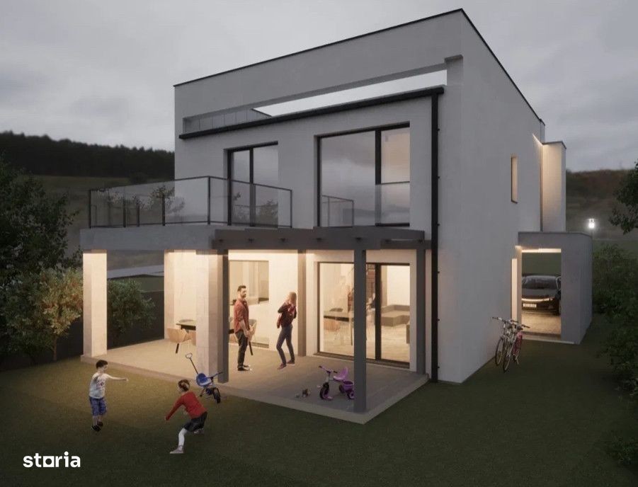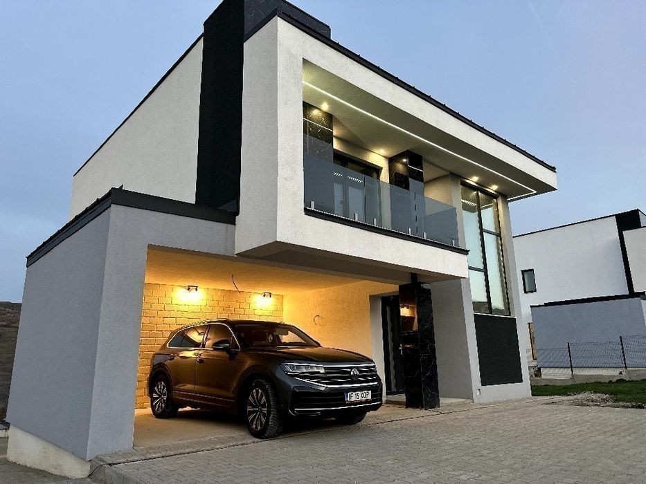 Casele au o suprafață de 184 mp construiti, teren aferent 716 mp. Construcțiile dispun de încălzire în pardoseală pe ambele niveluri.Geamuri termopan Rehau, țigla metalică Bilka,finisaje și izolații de calitate superioara. Mai dispunem de o parcela la strada principala de 3511 mp. Cu proiect pt pensiune. Compartimentare : -Parter : hol, living cu bucătărie open space, camera tehnica (camară), baie, o terasă acoperită generoasa de 22,5 mp cu iesire in curte și un garaj (25mp) care asigura doua locuri de parcare. -Etaj : hol, trei dormitoare, trei dresinguri,doua bai un balcon si o terasa (12mp) care ofera un peisaj deosebit. Facilitati : Zonă superba, lângă pădure, drum asfaltat pâna la proprietate, parc privat de 500mp (parcul deservește unui proiect de opt case individuale) drum privat care va fi asfaltat cu lățime de peste opt metri iluminat public și cu sens giratoriu în capat pentru a facilita intoarcerea. Mijloacele de transport în comun sunt in apropiere. Trei căi de acces spre Cluj-Napoca care este situat la o distanta de cca. 3,5 km pana la întrarea in oras și 8 km păna în centru orașului. Utilități: Apă,gaz,curent și posibilitatea de a contracta prin fibra optică : internet și televiziune. Cunoscând nevoia de a reduce costurile la utilitati montăm opțional panouri voltaice și pompe de căldură. Preț: 284.900 euro TVA inclus Pentru detalii suplimentare accesați site-ul nostru : www.casedecalitate.ro Sau sunați la nr. de telefon afișat.