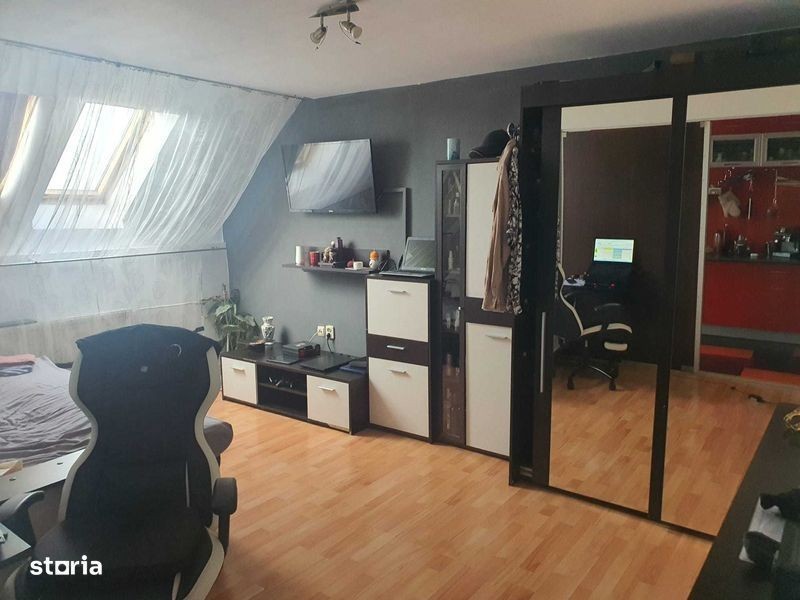 Vand Apartament pe strada Constantin Noica in cartierul Nufaru amplasat is spate la complexul Lotus cu priveliste spre parc cu o priveliste superba. Foarte aproape de statia de autobus si de tramvai cat si de Liceul Onisifor Ghibu Compus din: Camera cu o suprafata de 16.15 mp Bucatarie cu o suprafata de 5.65 mp Baie cu o suprafata de 4.90 mp Antreu cu o suprafata de 4.90 mp Balcon cu o suprafa de 2.5 mp Suprafata utila totala este de 34.10 mp suprafata construita totala de 39.74 mp Apartamentul esste pozitionat la etajul 5 (mansarda) al blocului