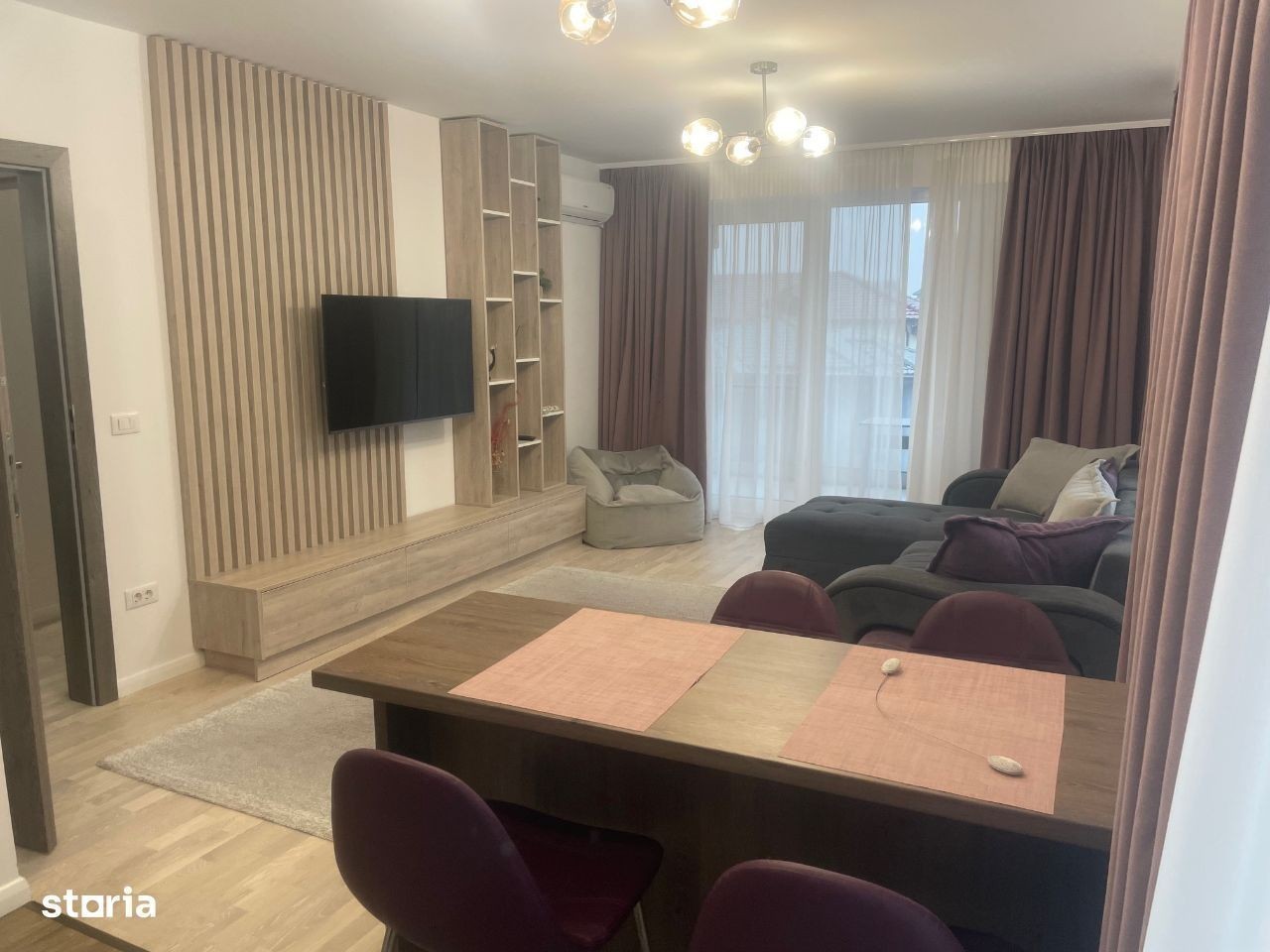 Inchiriere apartament 2 camere,in Ploiesti,zona Albert,situat la etajul 2 intr un bloc cu regimul de inaltime P+3.Imobilul se afla intr o zona de vile si blocuri nou construite,avand ca vecinatati mall Shopping City,restaurante,Carrefour,Kaufland,miloace de transport in comun,sala fitness,etc.Apartamentul are o suprafata de 56 mp pus balcon 6 mp.Dispune de loc de parcare propriu,lift,gresie,faianta,parchet,termopan,centrala termica.Se inchiriaza complet mobilat si utilat,AC,smart tv,masina de spalat rufe,plita pe gaz,cuptor electric,hota,combina frigorifica.Pretul de inchiriere este de 500 euro/luna + 1 luna garantie + 50% din chiria pe 1 luna comisionul agentiei.