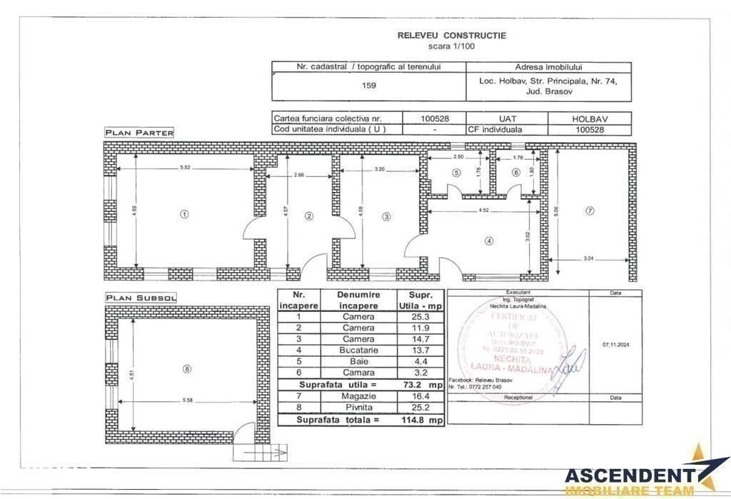 Comision cumparator: 0% ASCENDENT IMOBILIARE propune spre vanzare in REPREZENTARE EXCLUSIVA o autentica casa traditional saseasca pozitionata in inima localitatii Holbav, Brasov. Va invitam sa experimentati o vizionare initiala, din locatia unde va aflati, chiar acum, prin accesarea filmului de prezentare: Film prezentare: s: watch?v=MDSvfHcbyg Imobilul se desfasoara pe parter, avand o suprafata utila de 73 mp, o pivnita de 25,2 mp si o magazie de 16,4 mp, fiind amplasat pe un teren de 396 mp. Proprietatea include, de asemenea, un grajd si o sura de 65 mp. Edificiul are o excelenta pozitionare in teren, ramanand spatiu pentru amenajarea unui loc de joaca sau a unui foisor cu zona de barbecue. Rezidenta este configurata in stil specific constructiilor sasesti, cu o compartimentare nedecomandata. Cuprinde o bucatarie, un hol, o baie si trei dormitoare. Exista posibilitatea de a parca doua masini in curte. Situat intr-o zona cu infrastructura excelenta, chiar in centrul localitatii, beneficiind de toate utilitatile: curent electric, apa potabila, fosa septica, drum asfaltat si fibra optica. Constructia dateaza din anul 1900 si a fost reabilitata in 2012. Acoperisul este realizat cu grinzi de 10 10 si invelit cu tigla. In pivnita, peretii sunt sustinuti pe arce, realizate din caramida, pastrand elemente arhitecturale autentice atat pe fatada. Oferta este completata de infrastructura locala avantajoasa, fiind situata pe o strada asfaltata cu iluminat public, racordata la toate utilitatile necesare unui trai modern. Este la cateva minute de punctele de interes precum mijloace de transport, scoala, gradinita, supermarket etc. Va invit sa descoperiti potentialul acestei proprietati printr-o vizionare. Pentru orice detalii suplimentare, nu ezitati sa ma contactati! Invitam colegii de breasla la colaborare si oferim comision de colaborare! Cladire certificata clasa c cu un consum anual specific de energie [kWh m²an] 168.74. Indice de emisii echivalent CO2 [kgCO2 m²an] 42.77. Consum anual specific de energie din surse regenerabile [kWh m²an] 0. Consilier specializat pe aleasa oferta: domnul Anghel Livius Telefon WhatsApp: