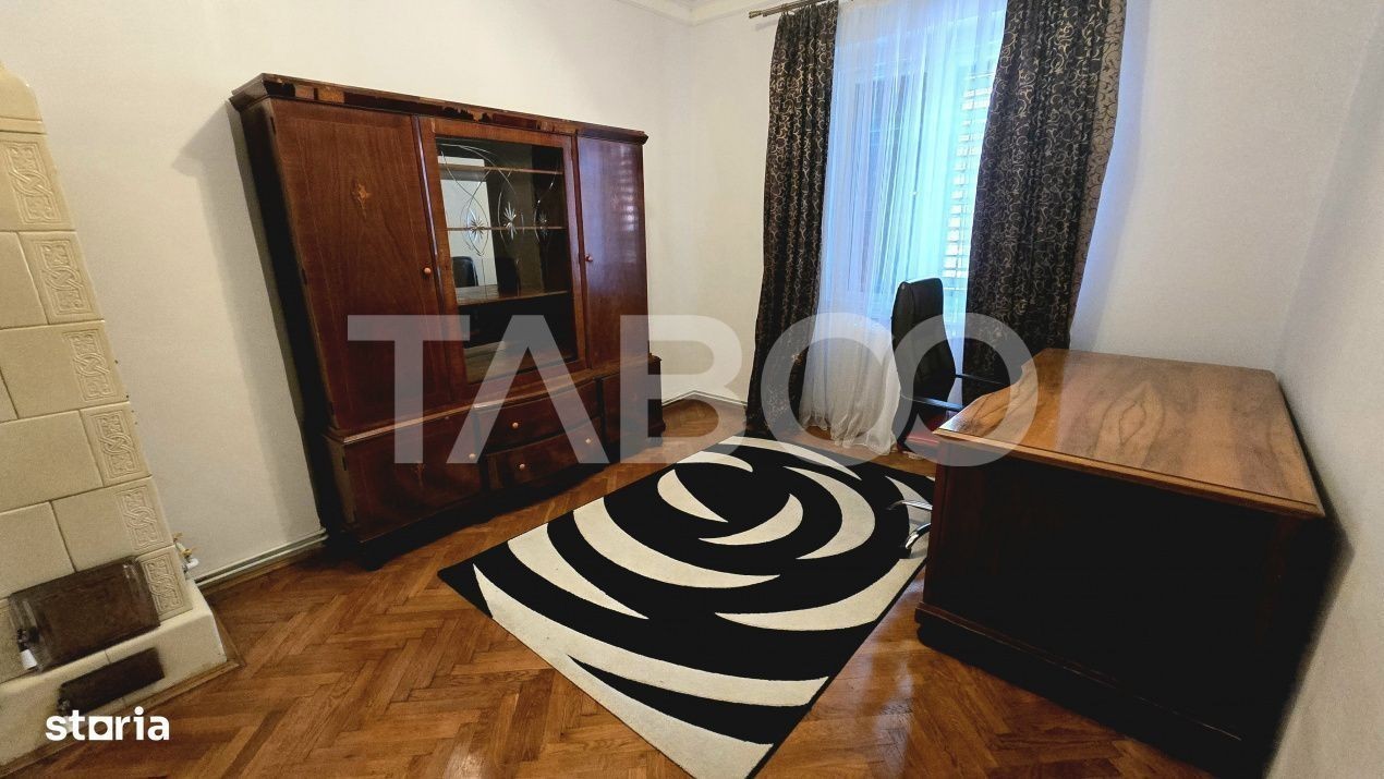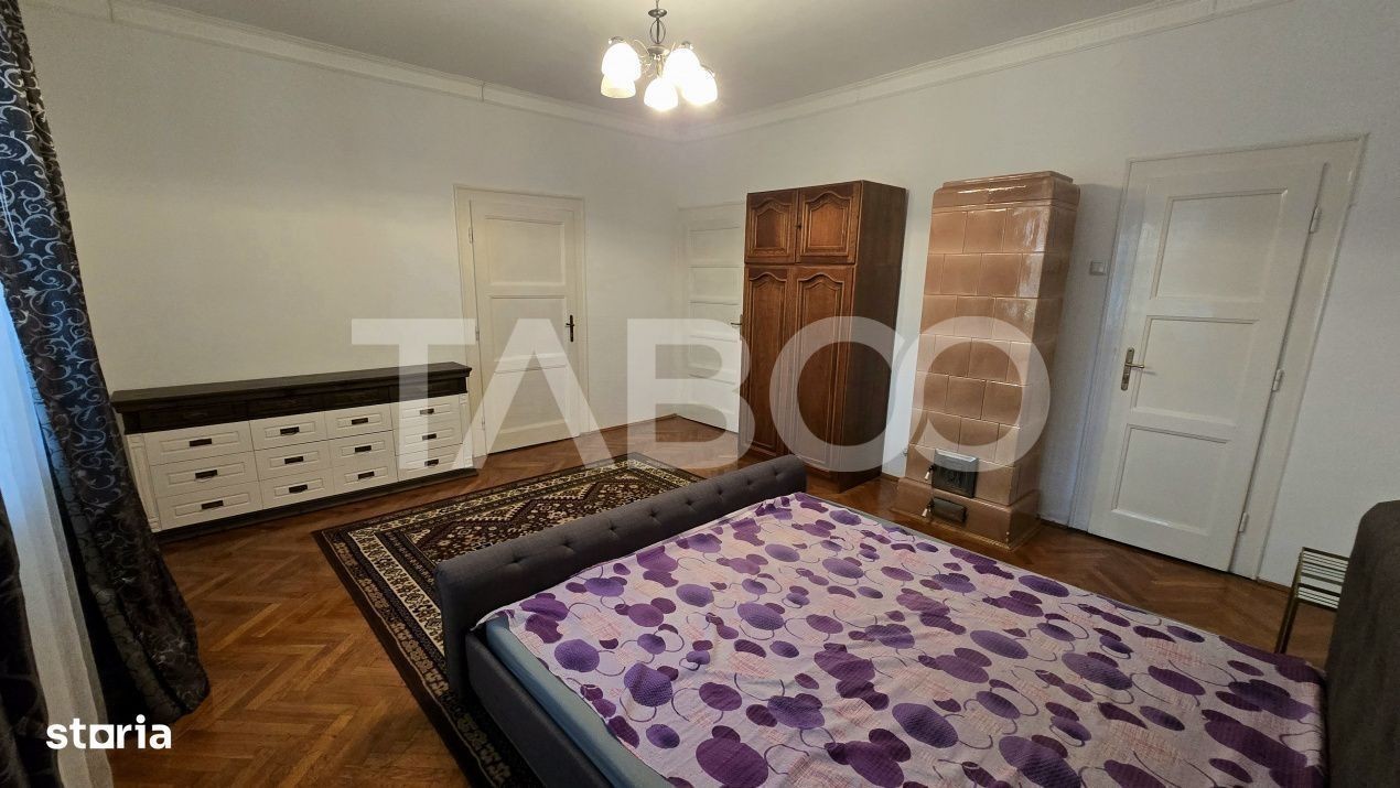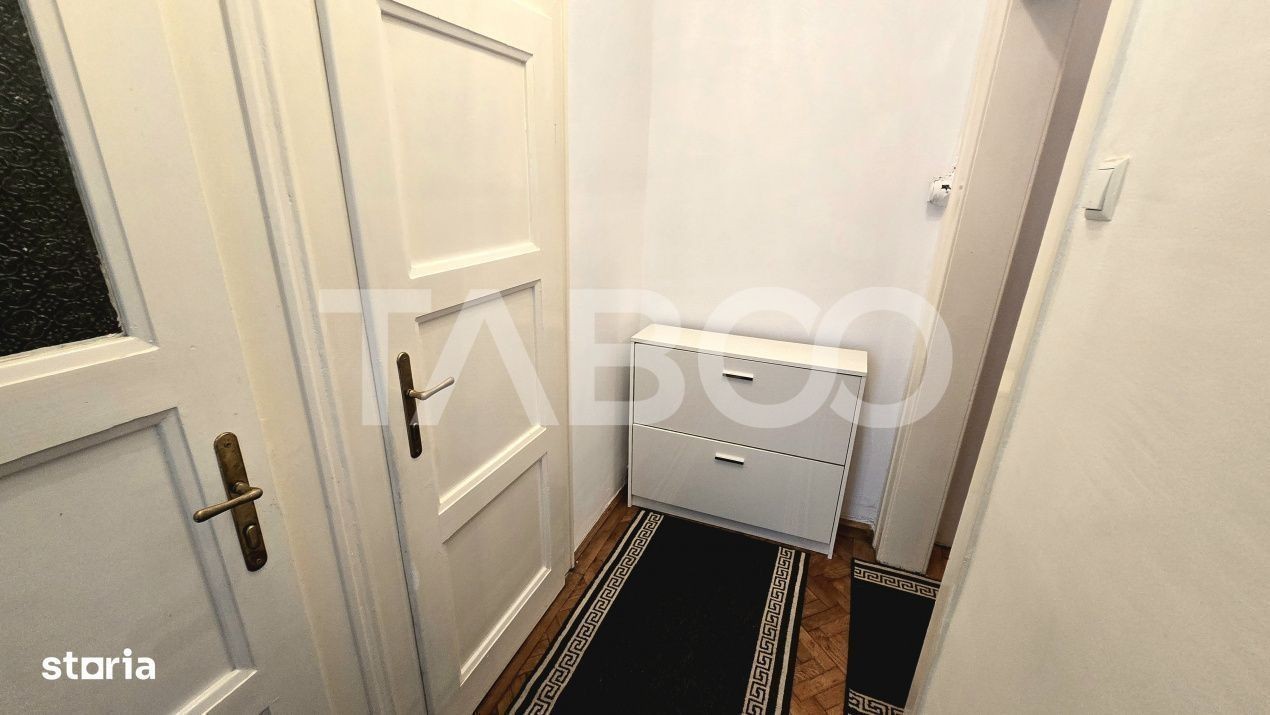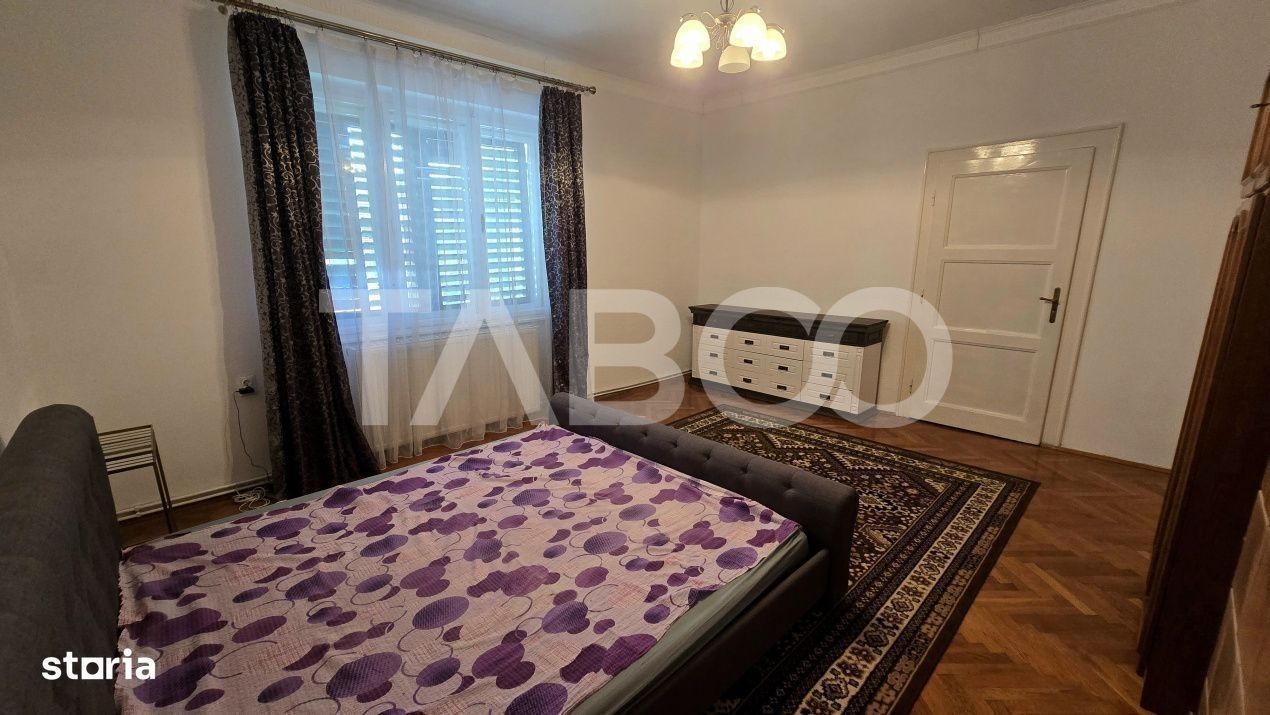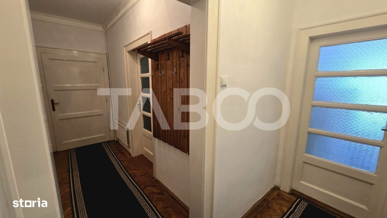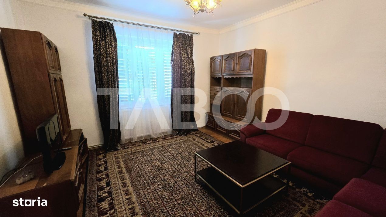Apartament 3 camere de inchiriat, decomandat, 110 mp, zona Orasul de Jos, Sibiu. Avantaje majore ale acestui apartament: • Locatie ferita de aglomeratie • Aproape de Piata Cibin TABOO Imobiliare propune un apartament de inchiriat cu 3 camere, decomandat, situat in localitatea Sibiu, zona Orasul de Jos, aflat la etajul 1 intr -un imobil tip casa/vila cu regim de inaltime pe Parter + 1 Etaj; anul constructiei 1950, structura caramida. Suprafata utila de 110 mp. • Hol; • Living; • Dormitor; • Dormitor; • Baie; • WC serviciu; • Bucatarie; • Usa intrare: lemn; • Usi interioare: lemn; • Tamplarie ferestre: lemn; • Pereti: vopsea lavabila, faianta; • Podele: parchet, gresie. • Bucatarie: mobilata, utilata; • Mobilat: complet; • Utilitati: curent electric, apa, canalizare, gaz, catv, telefon, acces internet, fibra optica; • Contorizare: apometre, contor gaz, contor curent electric, contorizare separata; • Caracteristici casa/vila: curte comuna. Apartamentul se inchiriaza mobilat si utilat cu: aragaz cu cuptor pe gaz, hota, masina de spalat rufe, frigider cu congelator. Incalzirea se realizeaza prin centrala proprie si calorifere. Pentru a se inchiria acest apartament se achita proprietarului chiria + o luna garantie. Pret: 500€ Sună-ne acum și află detalii despre această proprietate de inchiriat din Sibiu, dar și despre alte proprietăți potrivite pentru tine.