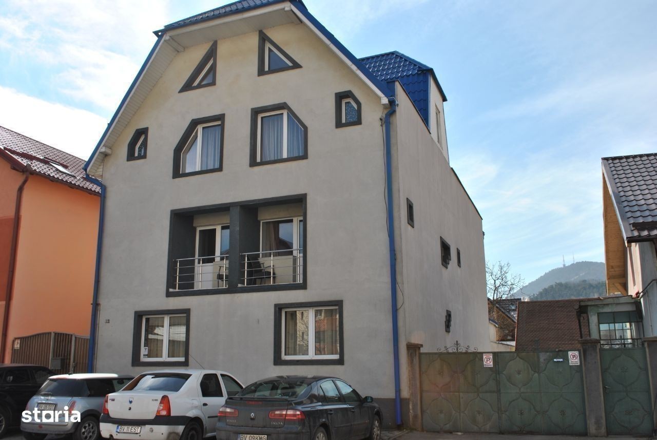 Ofer spre vanzare casa pretabil pensiune in Brasov, zona Centru Civic (Zizinului) curte 468 mp, parter+2 et+ mansarda, se vinde mobilat si utilat, 12 camere, fiecare cu baie proprie, incalzire cu centrala pe gaz, acces auto in curte.