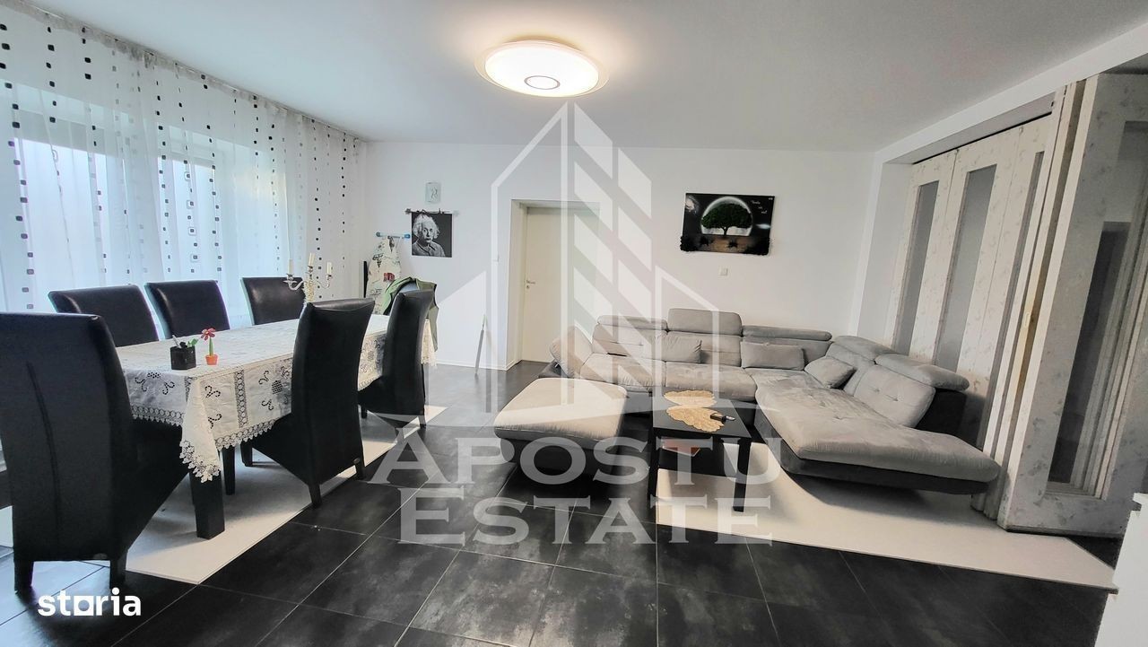 Apostu Estate va propune spre vanzare in exclusivitate,cu comision 0% la cumparator,o casa individuala,cu 5 camere,in Peciu Nou. Proprietatea se desfasoara pe o suprafata utila de 450 mp si o suprafata teren de 3873mp. Compartimentare: -hol acces spatios -debara cu acces facil in pod -birou/camera tehnica -living cu loc de luat masa -bucatarie -baie cu cabina de dus -3 dormitoare -dressing -baie de servici -beci spatios transformat in bar Casa a fost reabilitata si rezidita in totalitate in anul 2014. Confortul termic se realizeaza prin intermediul pompei de caldura Daikin,a celor 36 panouri fotovoltaice,a centralei Buderus si al climei,astfel proprietatea este independenta energetic,costuri minime de intretinere. Curtea este spatioasa,betonata,permite accesul auto interior si beneficiaza de 4 garaje de 200 mp,cu un elevator electric,cortina inchisa de 50 mp,ideale pt service auto. Proprietatea dispune de o gradina gereroasa,livada cu 100 de pomi fructiferi si o sera,fantana cu pompa si hidrofor. Sistemul care alimenteaza casa este on gride si are contract de proconsumator. Posibilitate de incarcare masina electrica,curent trifazat si monofazat,supraveghere video 5 camere,internet,porti mecanizate. O proprietate ideala atat pentru a locui cat si pentru a-ti desfasura propria afacere,la doar 14 km de Timisoara. Proprietatea se vinde mobilata si utilata,precum in poze. Va oferim consultanta si solutii financiare prin colaboratorii nostrii! Va asteptam cu drag la o vizionare!