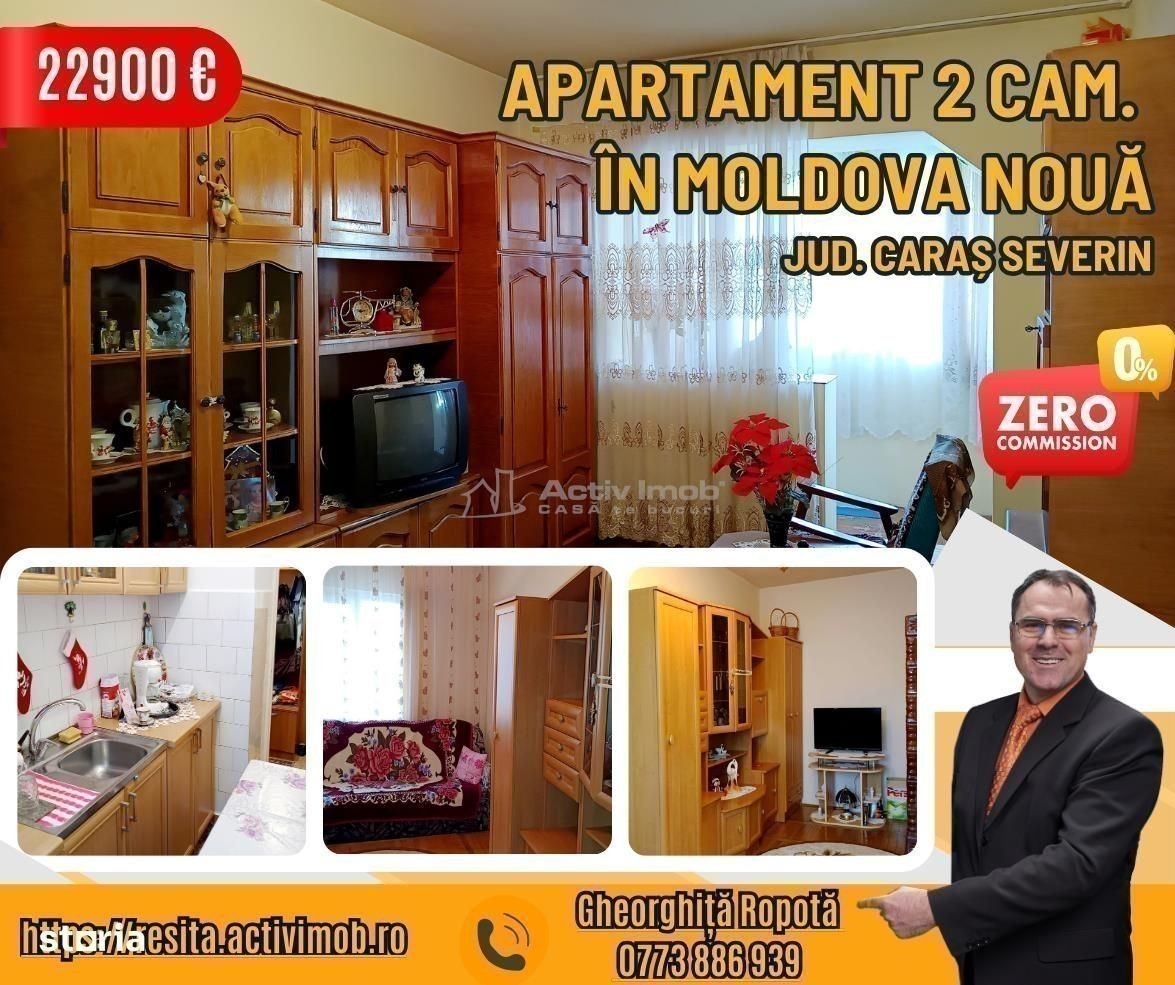 BENEFICII PENTRU CLIENTII ACESTEI OFERTE: 1. Beneficii oferite de zona: ACTIV IMOB va propune spre vanzare un apartament, cu structura semidecomandata, avand o suprafata utila de 36,39 mp, situat intr-o zona ultracentrala a orasului, cu strazi asfaltate si iluminat stradal. Este in imediata apropiere de magazine, farmacie, piata, gradinita, scoala generala, liceu, biserica ortodoxa, unitate bancara BRD, Lounge Bar & Pizza. In apropierea localitatii se afla Punctul Vamal cu Serbia. Orașul Moldova Noua este cunoscut pentru traditii si multiculturalitatea sa. 2. Beneficii tehnice ale ofertei: Apartament confort 2, semidecomandat, situat la etajul 4 al unui bloc cu 4 etaje. Proprietatea dispune de 2 camere mobilate, o bucatarie mobilata si utilata, o baie cu geam, 1 hol, o camara si un balcon inchis cu termopan. Incalzirea se realizeaza printr-o teracota pe lemne, iar feroneria este din termopan. Finisajele includ gresie, faianta si parchet laminat, iar baia beneficiaza de aerisire. Apartamentul se vinde complet mobilat (conform pozelor) si utilat (aragaz pe gaz, două frigidere, masina de spalat rufe si cuptor cu microunde), iar pretul este negociabil. Proprietatea este curata, aerisita si nu prezinta urme de infiltratii sau mirosuri neplacute. Acoperisul a fost renovat in luna august 2024. Scara imobilului este linistita, curata si prevazuta cu interfon. Apartamentul beneficiaza de o boxa inchiriata de primarie, pentru depozitarea lemne. Acest camin este pregatit pentru mutare imediata, recomandat atat pe segmentul rezidential cat si cel investitional. Pentru informatii suplimentare sau programarea unei vizionari, va invitam sa ne contactati la telefon: