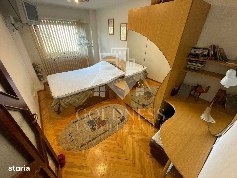 GOLDNESS Imobiliare vă propune spre închiriere un apartament cu 4 camere, complet mobilat și utilat, la etajul 1 într-un imobil de 8, pe strada Izlazului, în cartierul Manastur Apartamentul este compartimentat astfel: camera cu pat si dulap dormitor cu pat matrimonial, dressing spațios, noptiere, birou cameră cu o canapea extensibilă, dressing, noptiere, birou baie cu cabină de duș / vană, calorifer port prosop inox și dulap pentru depozitare bucătăria complet utilată balcon de 8 mp cu o priveliște superbă Imobilul este dotat cu toate cele necesare - centrală proprie, mașină de spălat haine, frigider, aragaz etc Se află în apropierea stațiilor de transport în comun, magazine, spații verzi, farmacii, etc. Dispune de 2 locuri de parcare ! Dacă sunteți interesați de acest apartament și doriți să îl vizionați, dar și pentru alte oferte sau detalii nu ezitați să ne contactați telefonic sau prin e-mail. Vă stăm la dispoziție! Pentru intermediere se percepe un comision de 50% din prețul chiriei!