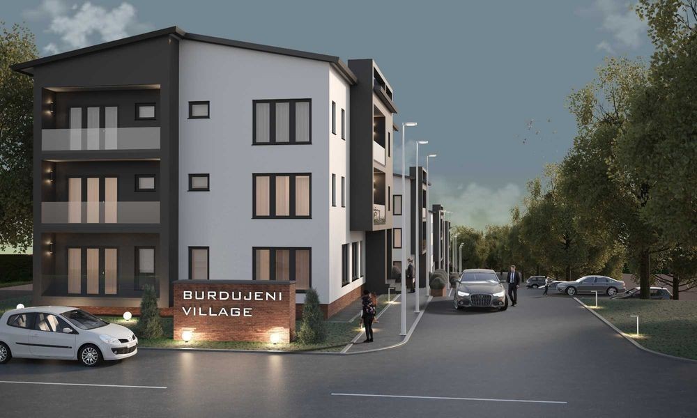 Burdujeni Village, un ansamblu rezidential situat in str 22 Decembrie nr.216 va ofera apartamente cu cu 2 sau 3 camere. • 2 camere, 55mp (Living, Dormitor, Baie, Bucatarie si Boxa), •3 camere, 74.5 sau 79 mp format din: Living (Sufragerie), 2 Dormitoare, Bucatarie, 2 Bai si Boxa depozitare. • Apartamentele se predau la semifinisat sau la cheie. • Locurile de parcare si boxele sunt incluse in pret. • Mai mult, in cadrul complexului ve-ti regasi parcari generoase, alei pietonale si spatii verzi, loc de joaca si zone relaxare. • Pret la semifinisat este de 1300 Euro/mp TVA inclus. Loc de parcare si boxa incluse. • Pret la cheie este de 1400 Euro/mp TVA inclus. Loc de parcare si boxa incluse.