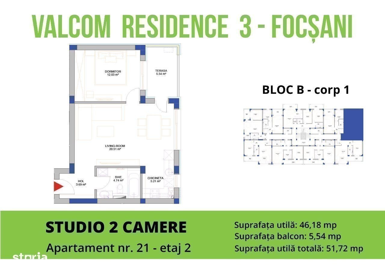 DEZVOLTATORUL IMOBILIAR-SC VALCOM CONSTRUCT SRL-Va supune atentiei un apartament tip studio 2 camere,situat in Focsani,str Cuza Voda,in imediata apropiere de Socar,Dedeman,decomandat,la etajul 1,S=51.72 mp utili,pret=65.391 euro+TVA.
