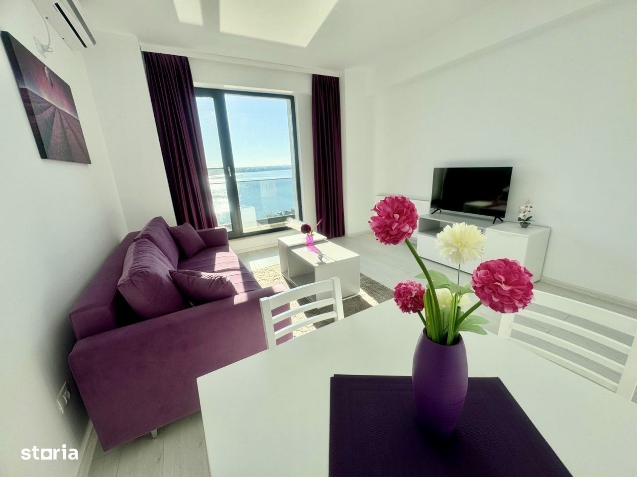 Inchiriez apartament de 2 camere cu vedere la la pe extrasezon in bloc nou 2024, Solid Residence Cazino Mamaia, pe malul lacului, la 200 de metri de mare, statii de autobuz la 100-150m distanta. Apartamentul dispune de aer conditionat si smart TV in fiecare camera, centrala proprie pe gaz cu termostat, masina de spalat rufe, balcon si bucatarie complet mobilata si utilata.