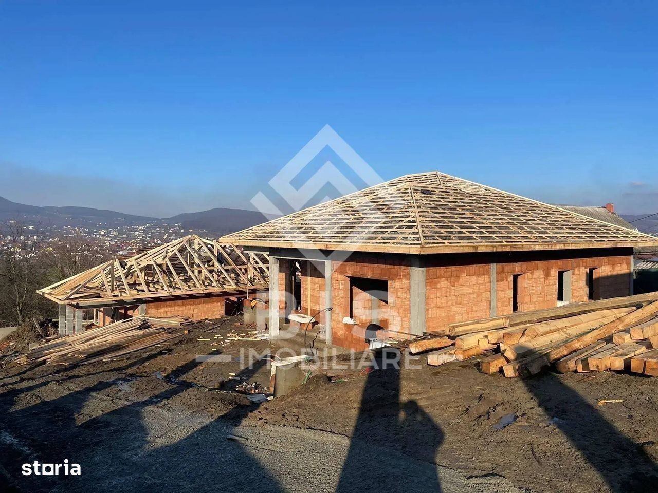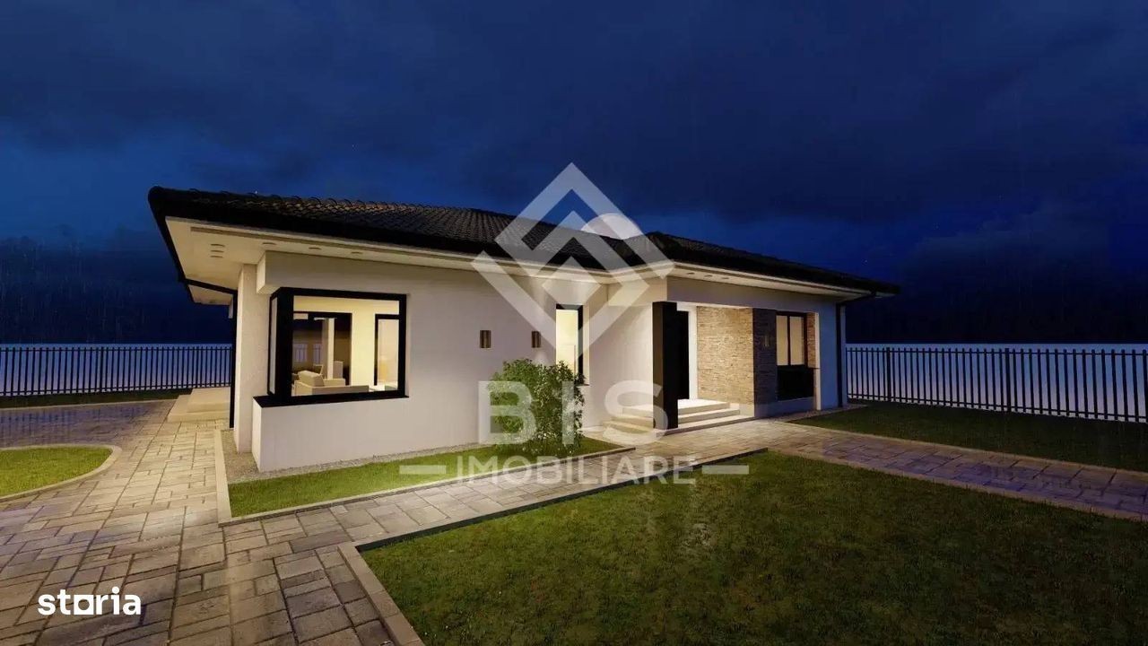 Oferim spre vânzare o casă modernă, situată în Bistriţa, zona Valea Ghinzii pe plan parter în suprafaţă de 117mp utili pe un teren de 400mp cu o panoramă superbă! Este formată din 3 dormitoare, living, bucătărie, dressing, hol, 2 băi şi 2 terase Casa este construită din materiale premium: ţiglă bramac, tâmplărie triplă Salamander, cărămidă, izolaţie exterioară, centrală Vaillant şi încălzire în pardoseală Uponor. Se poate vinde şi prin plata eşalonată ! Se poate vinde în diferite stadii, preţul afişat este pentru semifinisat. *Unele imagini sunt cu titlu de sugestie din proiecte anterioare ale constructorului. Pentru detalii suplimentare sau vizionari vă stăm la dispoziţie! VAUNT ID: 87515