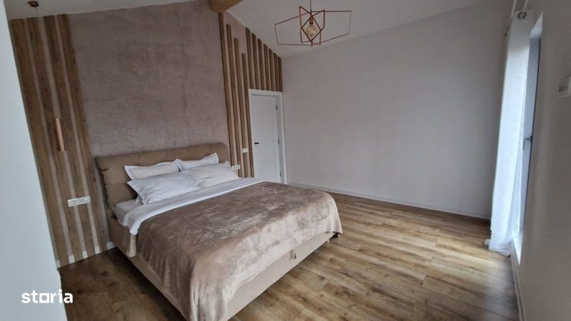 Casa moderna situata la poalele Lempesului cu acces direct,pe un teren de 1150 m2. Compartimentarea, la parter hol leaving cu bucatarie si o baie mare plus garajul si camera centralei, la etaj un dormitor master cu dresing, baie, terasa si birou (se poate folosi ca si dormitor, dresing, etc), iar la mansarda doua dormitoare mari din care unul cu dresing iar celalalt cu terasa plus o baie cu cada foarte generoasa. Se vinde mobilata si utilata. Casa dispune de toate utilitatile gaz, curent, apa, canal, fibra optica. Ca si modalitate de plata se accepta si 60% avans iar diferenta in rate transe pe maxim 24 luni. Pt mai multe detalii poze va rog sa ma contactati.