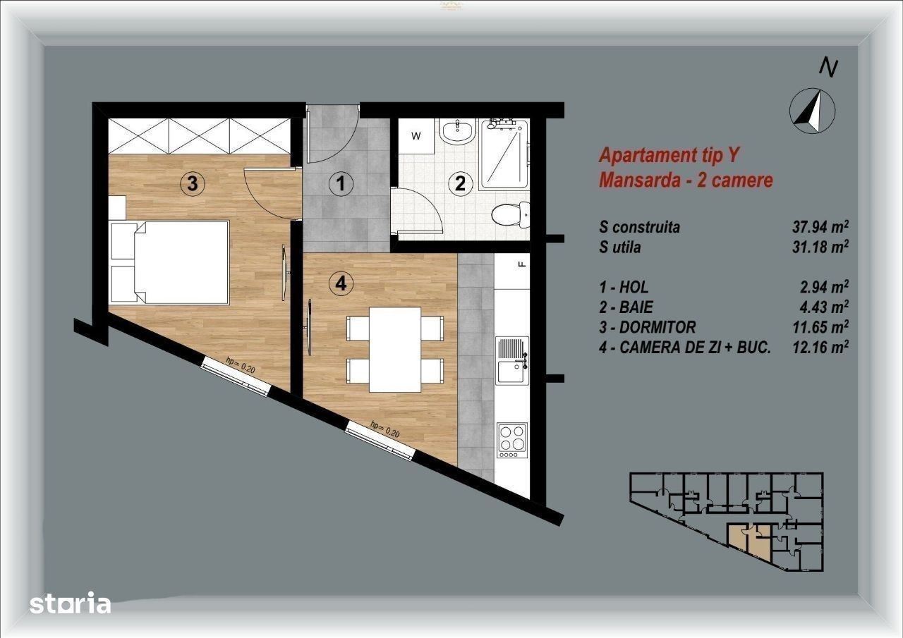 Garanti House Imobiliare va ofera cu *Comision 0%* spre vanzare apartamente cu 2 si 3 camere in suprafata construita cuprinsa intre 38 mp - 66.6 mp, fiind situate la etajul 4 (mansarda) al unui imobil nou localizat in zona centrala a orasului (zona Tipografiei), avand in imediata apropiere puncte de interes, precum:
