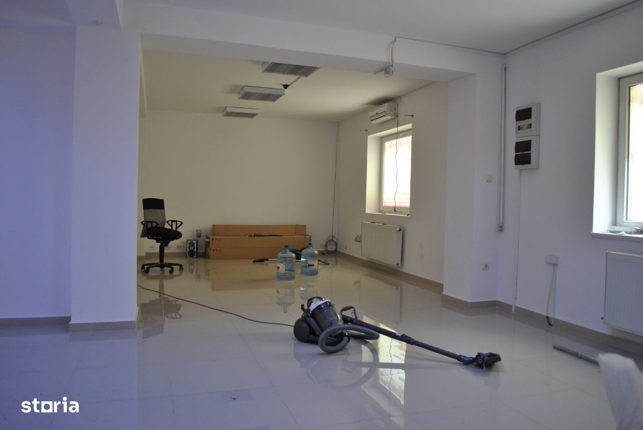 Ofer spre inchiriere casa in zona Centru Civic (Scriitorilor)singur in curte,casa este compusa din;demisol-parter-2etaje, la parter si demisol a functionat firma iar la etaj locuinta, incalzirea se face cu centrala pe gaz.