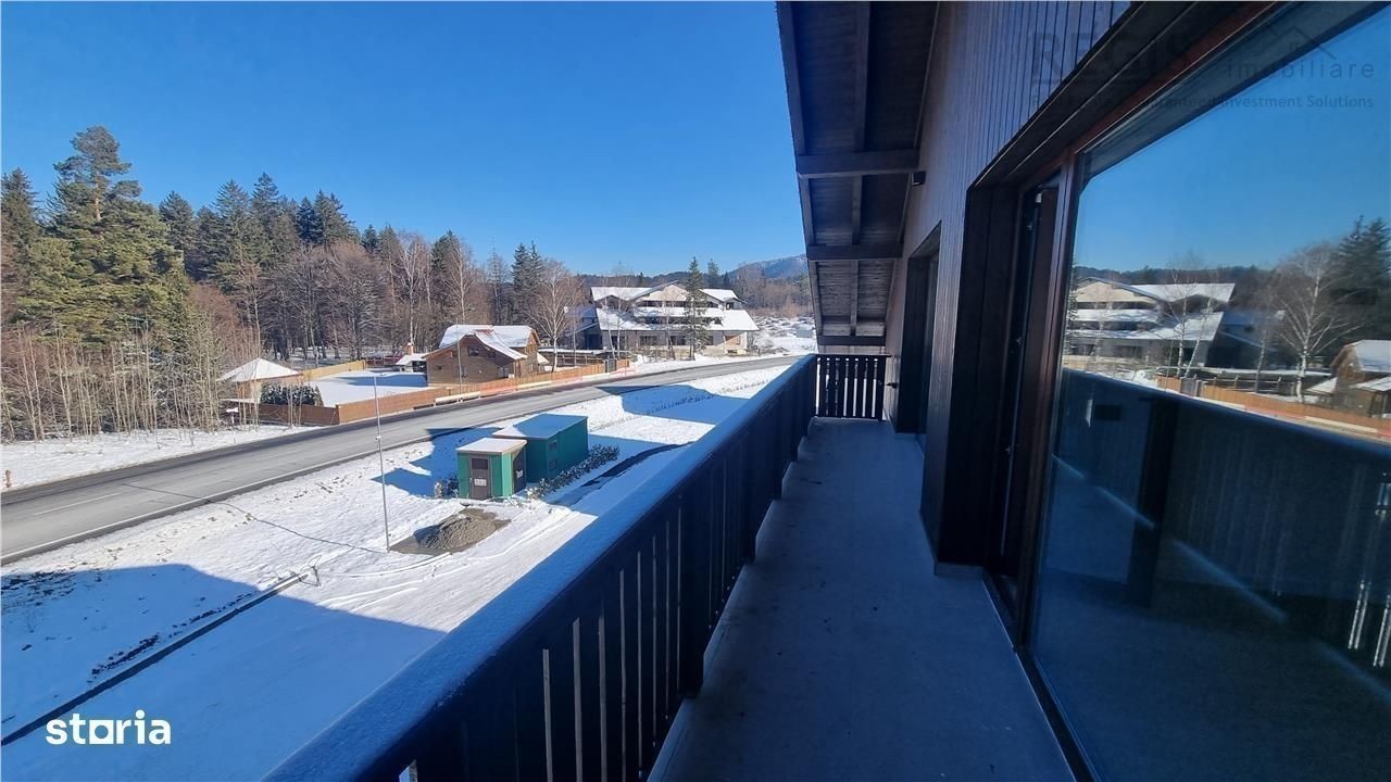 ID : 4758 REGIS Imobiliare va propune spre vanzare un modern apartament cu 4 camere in zona statiunii turistice Poiana Brasov. Apartamentul este situat la etajul 3 3 intr-un bloc de constructie noua, dispune de un loc de parcare extrateran, spatiu de depozitare comun pe etaj si incalzire in pardoseala. Proprietatea dispusa in 83 mp utili este impartita in sufragerie open space cu bucataria, dormitor matrimonial, baie utilata modern si doua camere ce pot avea diferite intrebuintari. Balconul deschis de 12 mp ofera posibilitatea de a va relaxa intr-un mediu comfortabil. In vecinatatea imobilului gasim statie de autobuz, hotel, restaurantul Stana Turistica, statie de inchiriere atv-uri, complexul de wellness Silver Mountain. Domeniul in care este situat imobilul este in continua crestere, o zona inconjurata de paduri de brad, cu privelisti incantatoare spre munti, departe de poluarea oraselor, dar la 15 minute cu masina distanta de Centrul Istoric al Brasovului. Apropierea de partiile de ski fac din proprietate o opurtunitate de investitie atat pentru exploatarea in regim hotelier cat si pentru a fi folosita ca o casa de vacanta. Pretul este fara TVA COMISION : 0 Bine Ati Venit Acasa 1