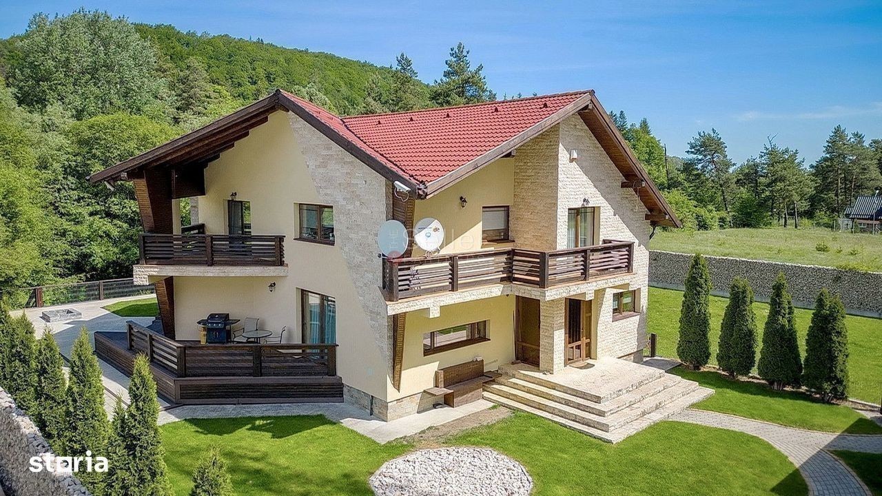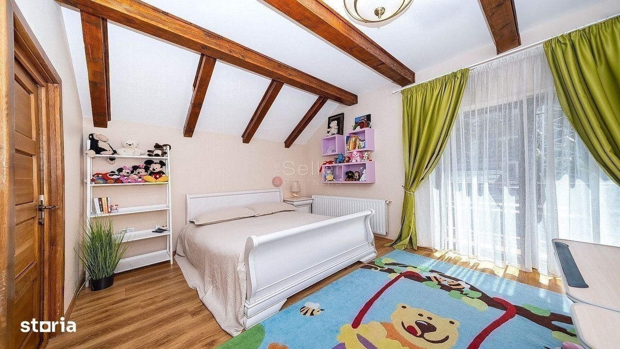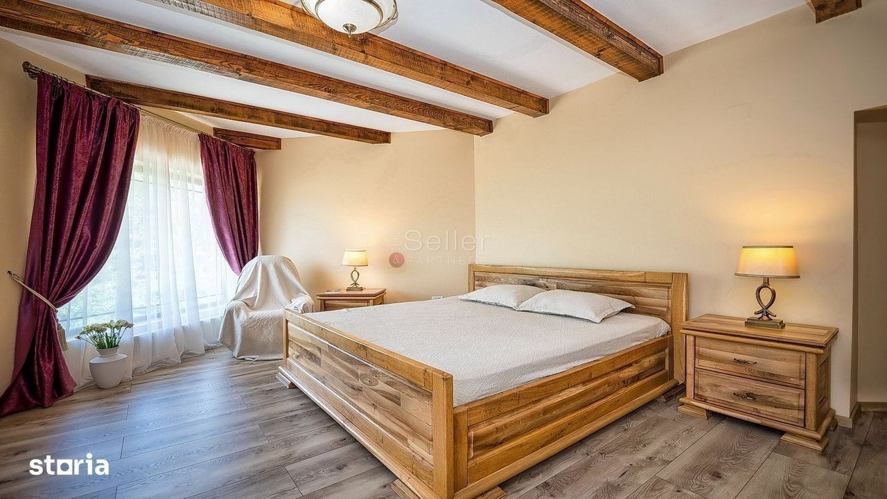 Imobil Deosebit | Bunloc | Sacele - Brasov Ati accesat un imobil situat in cartierul Bunloc - Sacele. DATE TEHNICE: Proprietatea propusa este una deosebita atat datorita arhitecturii, cat si a zonei de amplasare. Aceasta este dispusa pe regim de inaltime P+E, pe o suprafata de 1.395 mp de teren, cu amprenta constructiei de 135 mp. Pe langa suprafata generoasa de teren si proximitatea fata de padure, aceasta se invecineaza cu raul Timis, aici existand o zona de relaxare, ideala pentru recreere si petrecerea timpului liber, in natura. Imobilul este compartimentat dupa cum urmeaza: PARTER: Acest nivel este alocat zonei de zi, dispus astfel: - windfang care, impreuna cu holul de acces, ofera deschidere spre zona de living, bucatarie-dining, baie, debara si acces la scarile interioare; - living-ul, care detine iesire spre terasa, aceasta dispunand de vedere spre raul Timis, aflat in imediata apropiere a proprietatii; - zona aferenta semineului pe lemne reprezinta polul de atractie, al acestui imobil, fiind locul ideal pentru petrecerea timpului de calitate, alaturi de cei dragi; - pe parter regasim si bucataria, care este tip open space, cu zona de dining, aceasta fiind complet mobilata si utilata. Mobilierul din lemn - esenta de nuc, se imbina perfect cu cromatica casei. - tot pe acest nivel regasim un grup sanitar, ce dispune de aerisire naturala; - spatiu depozitare; ETAJUL MANSARDAT: Alocat zonei de noapte, acesta este impartit dupa cum urmeaza: - dormitorul matrimonial, cu o suprafata de 25 mp, ce dispune de acces la terasa de 7,4mp, detinand baie si dresing proprii; Mobilierul din lemn masiv, esenta de nuc&stejar, ofera o eleganta aparte acestei camere. - dormitorul 2, in suprafata de 19 mp, ofera deschidere spre terasa de 15 mp; - dormitorul 3, in suprafata de 17 mp, detine acces spre propria terasa, in suprafata de 14 mp; - cea de-a doua baie, care deserveste celelalte doua dormitoare, este dotata cu cabina de dus si aerisire naturala; Proprietatea detine pod amenajat. FINISAJE: - pereti caramida si izolatie termica; - acoperis cu tigla, izolat; - tamplarie PVC, tripan; - incalzire calorifere si termosemineu; - parchet lemn si usi lemn; - centrala termica gaz; - peisagistica realizata, cu gazon si plante ornamentale; - zona privata de plaja. UTILITATI: gaz, curent, apa, canalizare. AVANTAJE: - zona pitoreasca, langa padure; - apropierea de trasee montane, parapanta, enduro, plimbari cu bicicleta, ATV; - pretabil atat pentru locuit, cat si ca locatie de vacanta; - apropierea de cea mai importanta zona de retail, a orasului (Selgros, Dedeman, Metro etc). IMPREJURIMI: Imobilul este situat intr-o zona de vile, cu regim de inaltime P+M, fiind perfect racordat la infrastructura zonei: - la 20 minute de Piata Sfatului, cu auto; - la 500 de m de statia de autobuz; - magazinele sunt situate la 5 minute distanta, cu auto; Pentru informatii suplimentare, broker-ul care administreaza aceasta oferta, va sta la dispozitie. COMISION 0% - Cumparator Structura acestei prezentari nu poate fi preluata, fara acordul scris al The Seller & Partners.