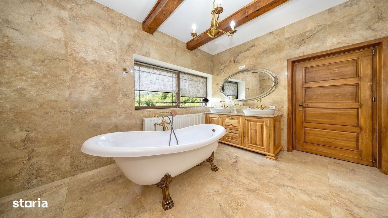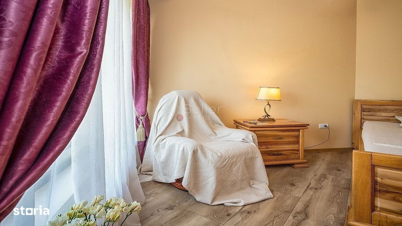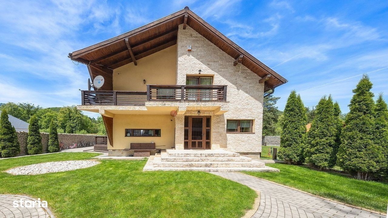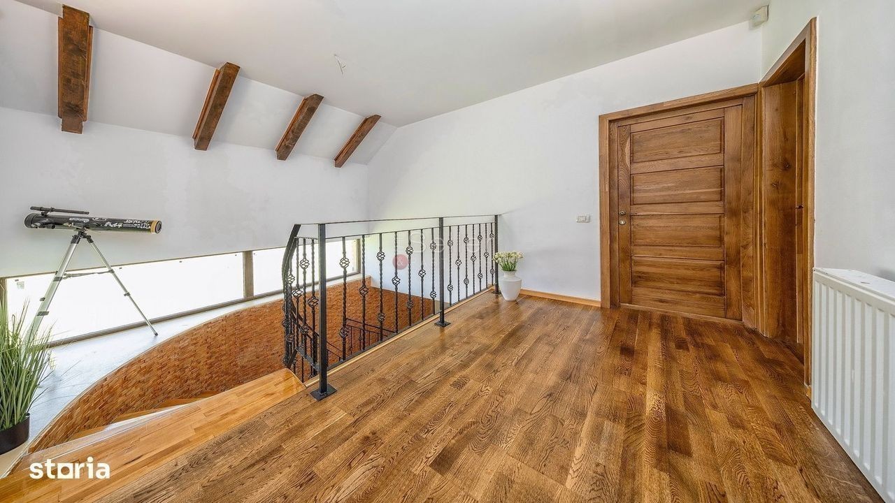 Imobil Deosebit | Bunloc | Sacele - Brasov Ati accesat un imobil situat in cartierul Bunloc - Sacele. DATE TEHNICE: Proprietatea propusa este una deosebita atat datorita arhitecturii, cat si a zonei de amplasare. Aceasta este dispusa pe regim de inaltime P+E, pe o suprafata de 1.395 mp de teren, cu amprenta constructiei de 135 mp. Pe langa suprafata generoasa de teren si proximitatea fata de padure, aceasta se invecineaza cu raul Timis, aici existand o zona de relaxare, ideala pentru recreere si petrecerea timpului liber, in natura. Imobilul este compartimentat dupa cum urmeaza: PARTER: Acest nivel este alocat zonei de zi, dispus astfel: - windfang care, impreuna cu holul de acces, ofera deschidere spre zona de living, bucatarie-dining, baie, debara si acces la scarile interioare; - living-ul, care detine iesire spre terasa, aceasta dispunand de vedere spre raul Timis, aflat in imediata apropiere a proprietatii; - zona aferenta semineului pe lemne reprezinta polul de atractie, al acestui imobil, fiind locul ideal pentru petrecerea timpului de calitate, alaturi de cei dragi; - pe parter regasim si bucataria, care este tip open space, cu zona de dining, aceasta fiind complet mobilata si utilata. Mobilierul din lemn - esenta de nuc, se imbina perfect cu cromatica casei. - tot pe acest nivel regasim un grup sanitar, ce dispune de aerisire naturala; - spatiu depozitare; ETAJUL MANSARDAT: Alocat zonei de noapte, acesta este impartit dupa cum urmeaza: - dormitorul matrimonial, cu o suprafata de 25 mp, ce dispune de acces la terasa de 7,4mp, detinand baie si dresing proprii; Mobilierul din lemn masiv, esenta de nuc&stejar, ofera o eleganta aparte acestei camere. - dormitorul 2, in suprafata de 19 mp, ofera deschidere spre terasa de 15 mp; - dormitorul 3, in suprafata de 17 mp, detine acces spre propria terasa, in suprafata de 14 mp; - cea de-a doua baie, care deserveste celelalte doua dormitoare, este dotata cu cabina de dus si aerisire naturala; Proprietatea detine pod amenajat. FINISAJE: - pereti caramida si izolatie termica; - acoperis cu tigla, izolat; - tamplarie PVC, tripan; - incalzire calorifere si termosemineu; - parchet lemn si usi lemn; - centrala termica gaz; - peisagistica realizata, cu gazon si plante ornamentale; - zona privata de plaja. UTILITATI: gaz, curent, apa, canalizare. AVANTAJE: - zona pitoreasca, langa padure; - apropierea de trasee montane, parapanta, enduro, plimbari cu bicicleta, ATV; - pretabil atat pentru locuit, cat si ca locatie de vacanta; - apropierea de cea mai importanta zona de retail, a orasului (Selgros, Dedeman, Metro etc). IMPREJURIMI: Imobilul este situat intr-o zona de vile, cu regim de inaltime P+M, fiind perfect racordat la infrastructura zonei: - la 20 minute de Piata Sfatului, cu auto; - la 500 de m de statia de autobuz; - magazinele sunt situate la 5 minute distanta, cu auto; Pentru informatii suplimentare, broker-ul care administreaza aceasta oferta, va sta la dispozitie. COMISION 0% - Cumparator Structura acestei prezentari nu poate fi preluata, fara acordul scris al The Seller & Partners.