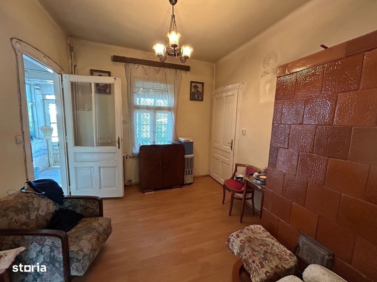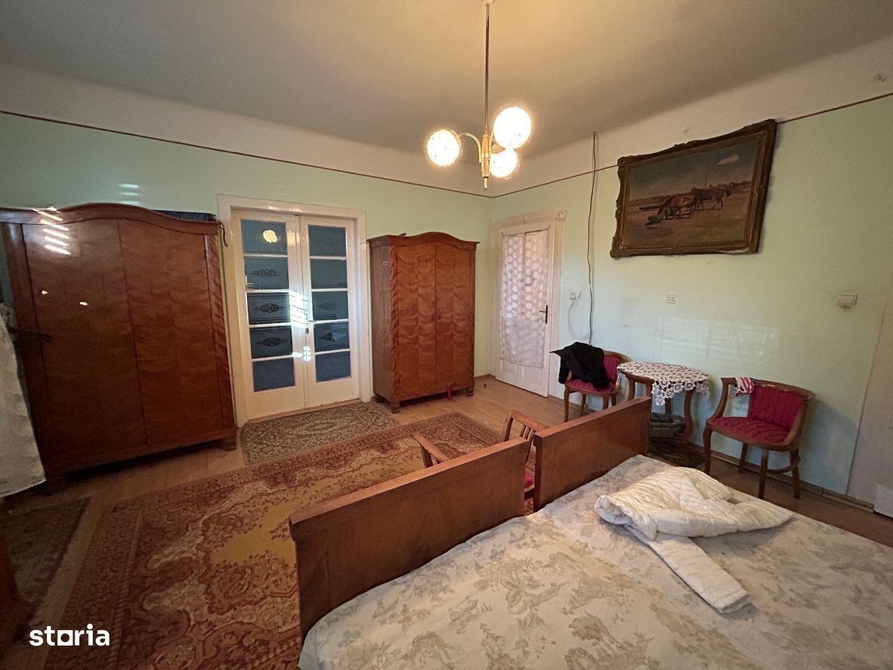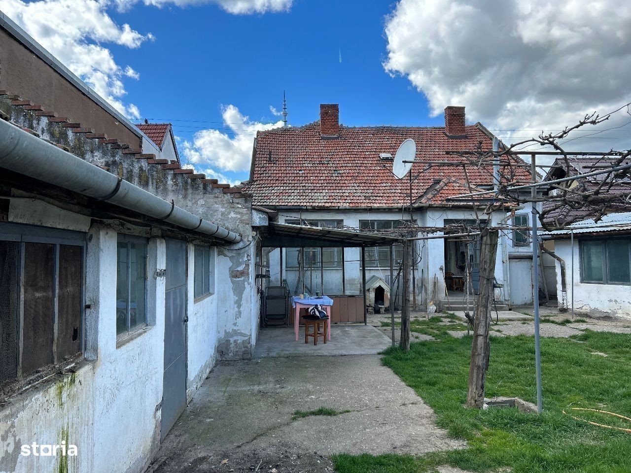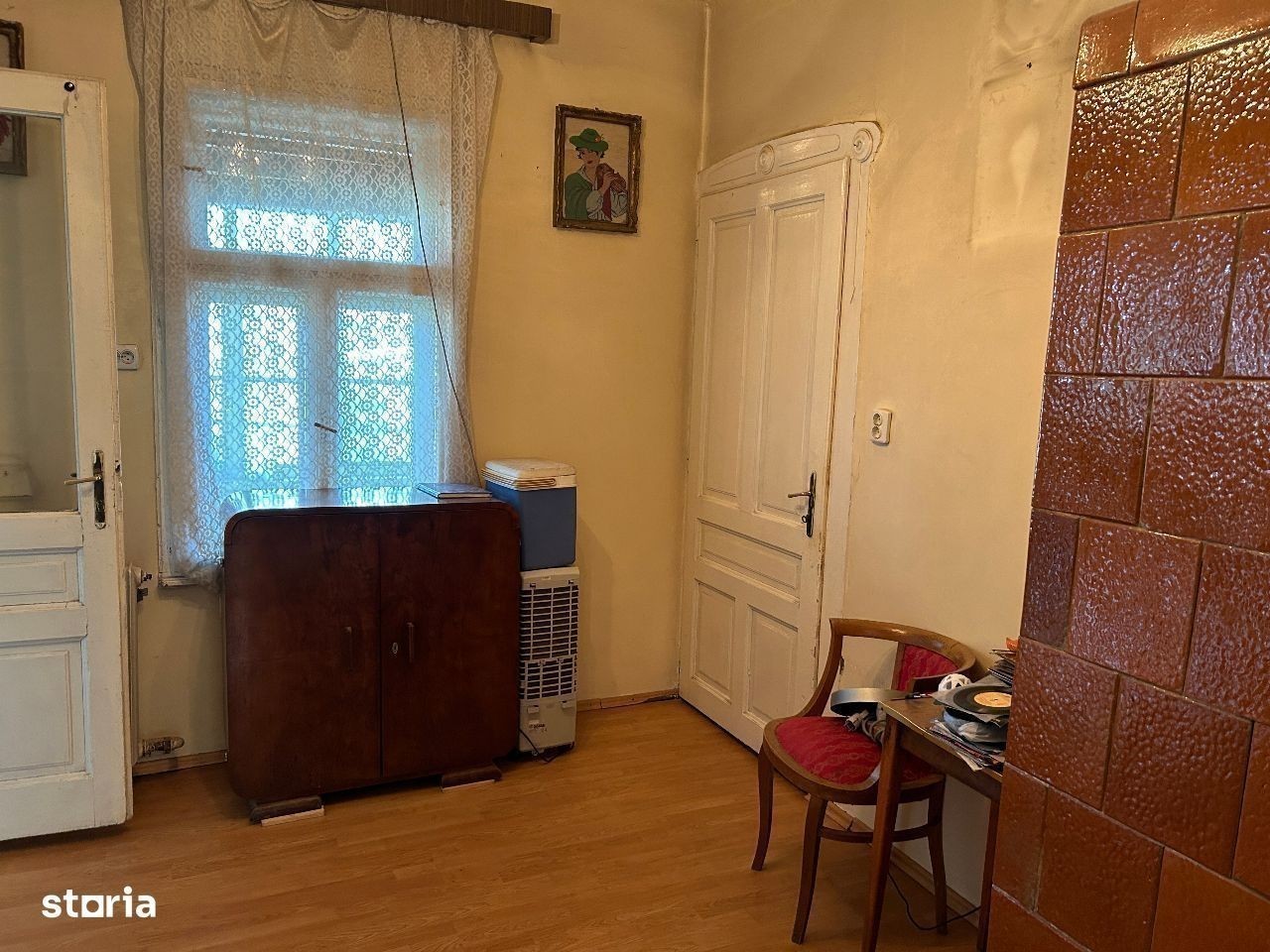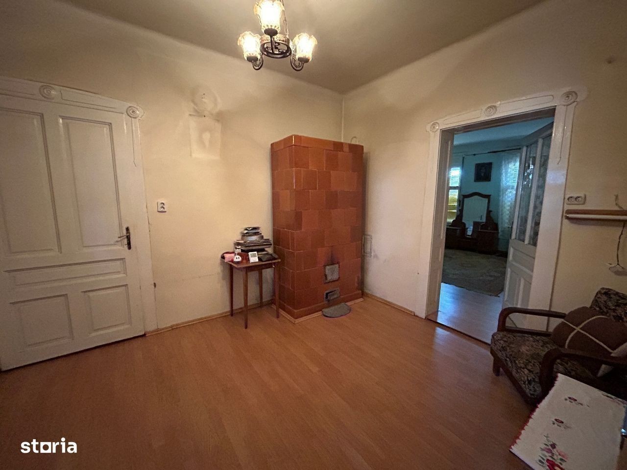 Vand casa mare din caramida P+1,+ anexe mari din caramida, situata in Parneava, in suprafata totala de 1.200 mp.,suprafata construita 180 mp, front stradal 17 ml, iar in gradina cu front de 26 mp.pretabil pentru inca o constructie mare. Constructie este din caramida si este dispusa astfel : la parter cu 2 camere mari la strada, 1 camera spre curte, bucatarie si baie mari, un hol din care se urca spre etaj, o camara de alimente, iar la etaj inca o camera mare, un hol si un balcon exterior,inclusiv pivnita mare.