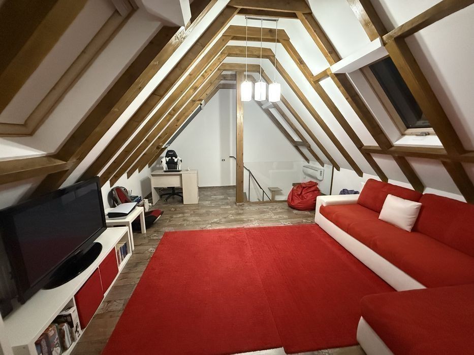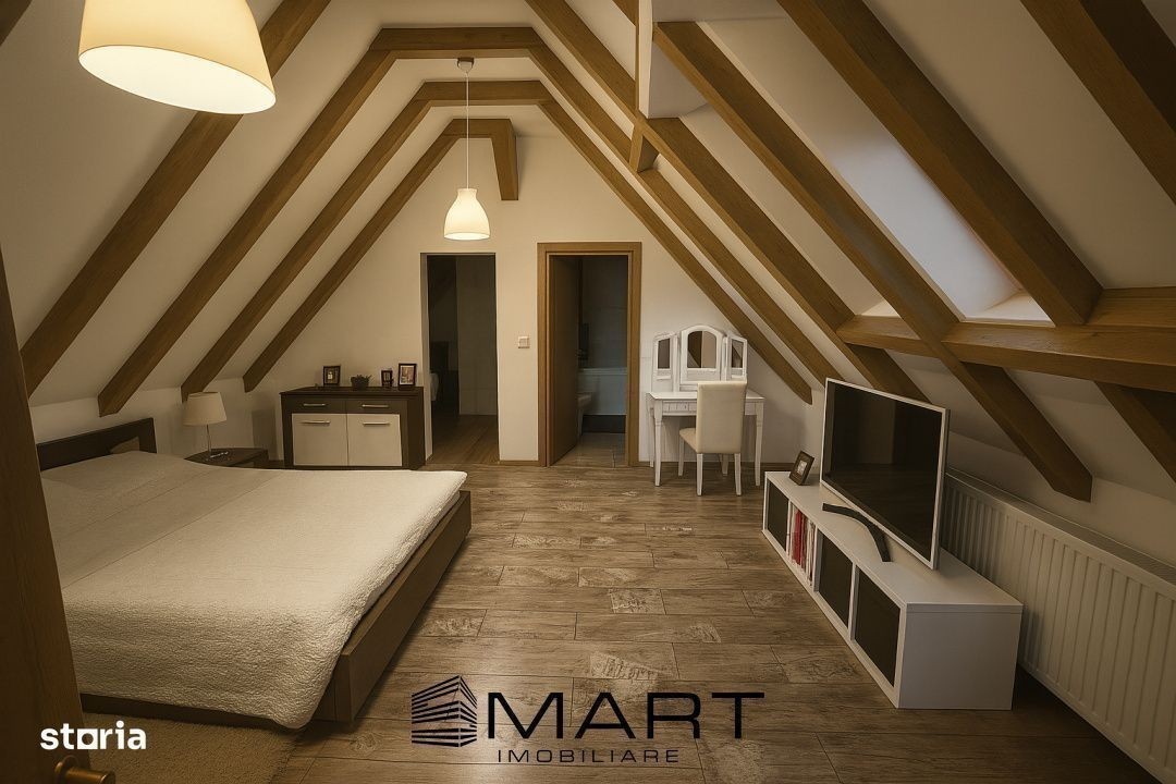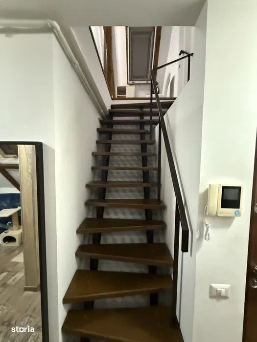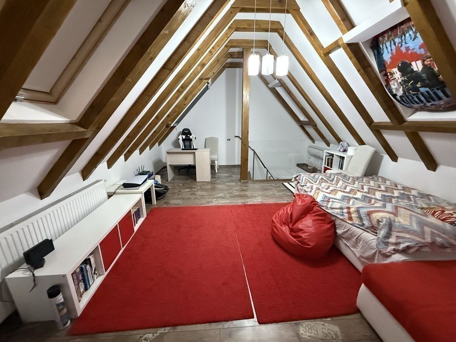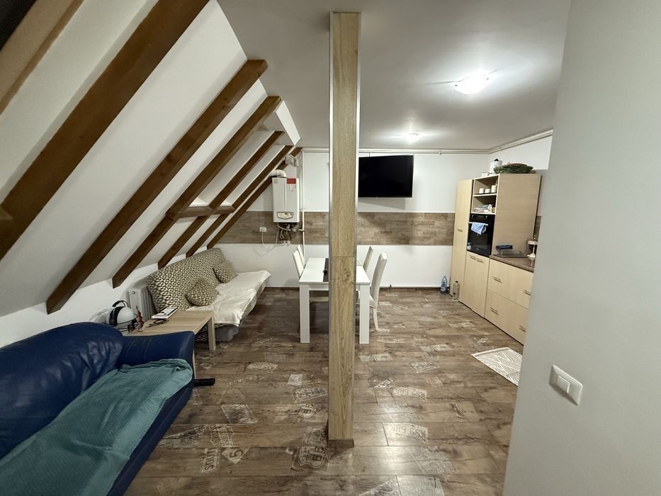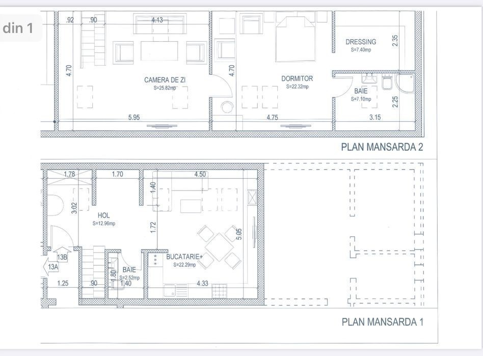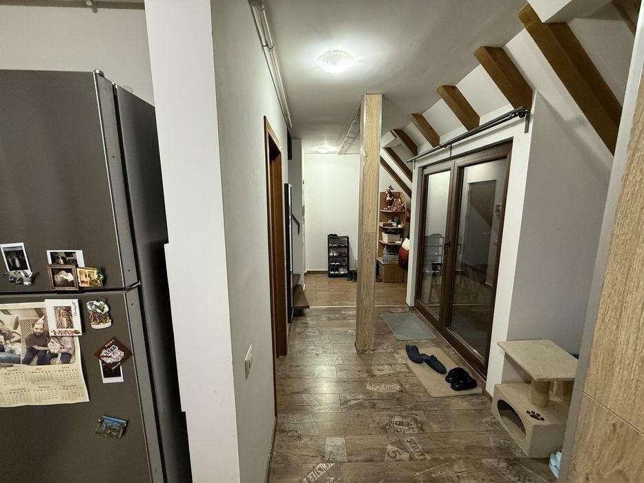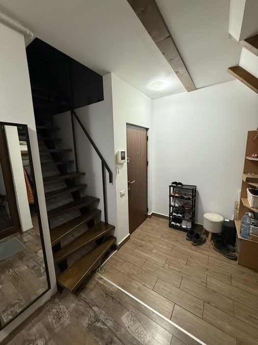 Vând apartament la mansardă pe două niveluri în zona Tractoru. Suprafața utilă 104 mp Primul nivel are hol, baie servici/living cu bucătărie și balcon Etajul are o camera de zi, dormitor matrimonial cu baie și dressing. Spațiu de depozitare 2 mp Apartamentul are și un loc de parcare Pret este de 189500 euro.