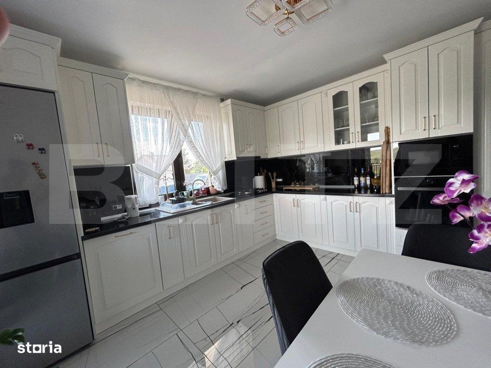 Blitz va prezinta o proprietate exclusivistă de 306 mp utili, situată pe un teren generos de 2500 mp. Construită la cele mai înalte standarde, casa beneficiază de încălzire în pardoseală inclusiv pe terase, aspirator centralizat prin perete și mobilă din lemn masiv frasin, completată de uși din lemn de tei. Compartimentare: Demisol:Garaj,Beci,Cameră centralei,baie Parter:Hol spațios,living generos,bucătărie modernă, 1 dormitor,baie,terasă acoperita cu încălzire in pardosela Etaj:Hol,3 dormitoare,baie,spațiu depozitare,dressing,terasă acoperită, încălzită prin pardoseală Mansardă: Spațiu open space Această casă este ideală pentru cei care caută un stil de viață luxos și confortabil, într-o zonă liniștită și pitorească. Finisajele premium și dotările de ultimă generație asigură un nivel ridicat de eleganță și funcționalitate. Nu ratați ocazia de a descoperi această proprietate unică, perfectă pentru familii care apreciază rafinamentul și calitatea. Va asteptam la vizionare !