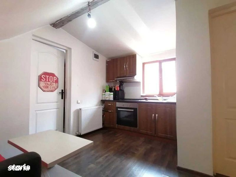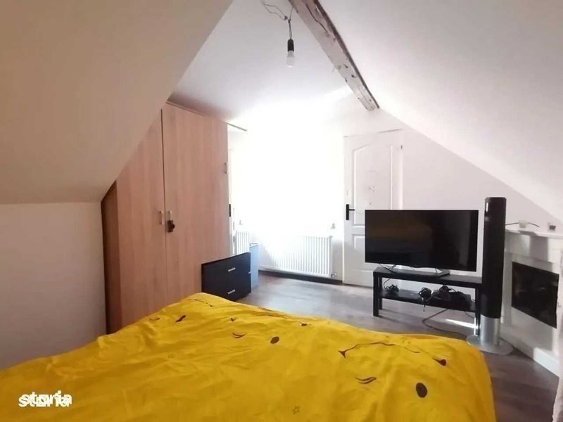 De vanzare apartament situat orasul Brasov pe Strada de Mijloc, in Brasovul vechi, apartament pe doua niveluri, parter si mansarda, avand la parter camera de zi, bucatarie si baie iar la mansarda, dormitor, bucatarie si baie, in prezent la partea de jos functioneaza un hair-salon, iar sus este locuinta. Partea de jos de asemenea este trecuta ca si spatiu comercial in acte. Apartamentul are o suprafata totala de 88 mp, este situat intr-o casa renovata, se vinde si cu preluarea chiriasilor care achita o chirie de 500 Euro/luna, pe partea de jos, sus nu se plateste chirie. Renovat in 2018, spatiul declarat in cartea funciara, partea de jos iar partea de sus, pod locuibil Se afla la cca 1 km de centrul orasului, este o zona de case, cu vad comercial, mijloace de transport in comun. Este pretabil si in scopul inchirierii in regim hotelier. Incalzirea se asigura cu centrala pe gaz, separari la curent, apa si gaz, schimbate inclusiv instalatiile electrice si sanitare. Mobilierul de frizerie si salon, nu fac obiectul vanzarii, dar se poate discuta si acest aspect. Total mp locuibili 88 mp, construiti 105 mp, exista aordul vecinilor pentru functionare, schimbare poarta la strada. 1500euro/mp locuibil