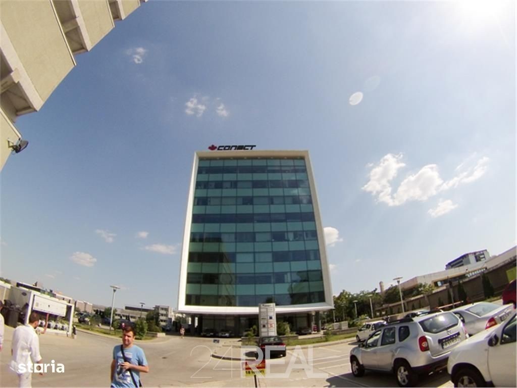 Spatii de birouri de inchiriat in cladirea Conect 1, zona Pipera, Bulevardul Dimitrie Pompei, Sector 2, Bucuresti. Imobilul este incadrat la clasa A, este dispus pe S+P+5E+E Tehnic si face parte din complexul Conect Business Park. Proiectul este situat in zona de Nord a Bucurestiului, in apropiere de strazile Fabrica de Glucoza și bulevardul Barbu Vacarescu, la doar cateva minute de statia de metrou Pipera si dispune de o suprafata totala inchiriabila de aproximativ 3271 de m2. In incinta imobilului exista o sala de meeting spatioasa, ce poate fi inchiriata pentru intalniri si evenimente speciale. In clipa de fata la parter functioneaza un resturant tip autoservire, elegant si cu meniu diversificat și o curățătorie ecologica. Cladirea dispune si de 500 locuri de parcare, in parcare subterana sau in curte, ce pot fi inchiriate contra cost. Centrul de afaceri beneficiaza de facilitati specifice clasei A şi A+: faţadă din sticlă cu perete cortina la exterior; tavan casetat cu corpuri de iluminat incorporate; sisteme moderne de incalzire si racire realizate printr-un sistem de ventilatoare montate în tavan cu sistem HVAC în 4 tevi; echipament BMS (Building Management System) - sistem de monitorizare centralizata a cladirii care duce la optimizarea costurilor de consum şi întreţinere; aport de aer proaspat; pardoseala flotanta; mocheta antistatica; retea data-voice; instalatie de detectare si prevenire a incendiului; receptie laparterul cladirilor; supraveghere cu camere video; paza permanenta a cladirilor si a parcarii; parcare generoasa. Daca doriti sa inchiriati un birou in una dintre cladirile ce fac parte din complexul Conect Business Park, sunati pentru disponibilitati si o vizionare!