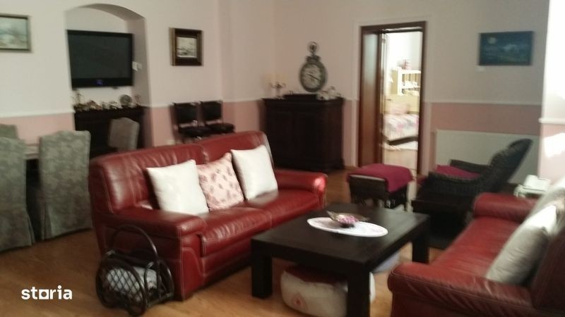 Proprietar, vand apartament superb cu 4 camere, situat in centrul istoric pe str Castelului, etaj 1 ( din P+1), suprafata utila 144 mp, plus o boxa de 13 mp in beci ( inscrisa in CF ) si cota parte de 24% din partile comune inclusiv din terenul de 636 mp.Apart este foarte luminos ( geamuri mari 2m/1m ) si calduros ( ziduri din caramida foarte groase, geamuri termopan / maro ). Este format din living, 2 dormitoare, 1 camera folosita ca birou,bucatarie separata, o baie cu cada si aerisire naturala, o baie cu toaleta, chiuveta si aerisire cu ventilator.Apart a fost renovat complet (ras pana la caramida, au mai ramas doar zidurile, in rest totul a fost schimbat ), instalatie electrica schimbata, instalatie sanitara schimbata ( tevi din cupru, centrala termica pe gaz Ferroli ),aer conditionat, alarma, parchet de trafic intens in toate camerele ( sub parchet s- a turnat sapa din beton si s- a pus izolatie ), gresie si faianta in bucatarie si in bai, inaltime actuala camere 3 m ( dupa ce am coborat tavanul ). Se vinde mobilat si utilat in proportie de 90 % ( mobilier Mobexpert din lemn masiv, doua canapele din piele naturala si una din stofa ). Apart este foarte spatios si insorit, cu priveliste superba spre Tampa. Masina se poate parca in fata portii unde este locul marcat cu X. In imobil exista in total 6 apartamente dintre care 1 este inchiriat in regim hotelier, 1 e inchiriat pe termen lung, iar celelalte 4 sunt locuite permanent de catre proprietari, deci apart se preteaza atat ca rezidenta pt o familie cat si ca investitie pt inchiriere.Niciunul dintre proprietari nu detine masina, deci la nevoie se poate intra si in curte cu masina ( dimensiunea portii permite accesul auto in curte dar incape o singura masina in curte si e mult mai comod sa se parcheze in strada in fata portii ).Exista si un balcon dragut cu iesire din casa scarii exact langa usa de intrare in apartament ( usa metalica solida ).Pt mai multe informatii si poze, ma puteti contacta telefonic sau prin mesaj. Nu colaborez cu agentii imobiliare decat daca au o solicitare concreta de la vreun client care cauta genul acesta de apartament.Clasa energetica C.